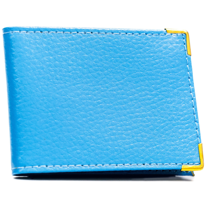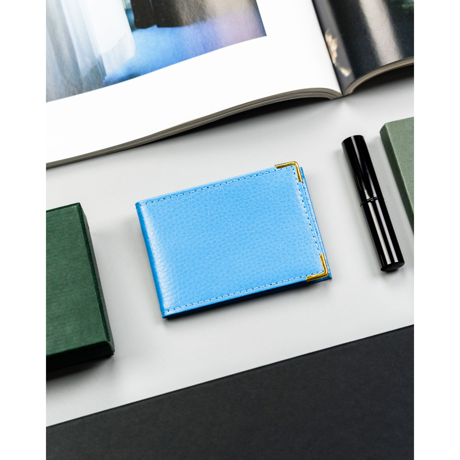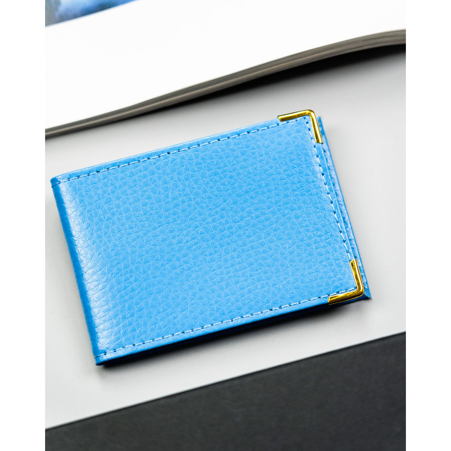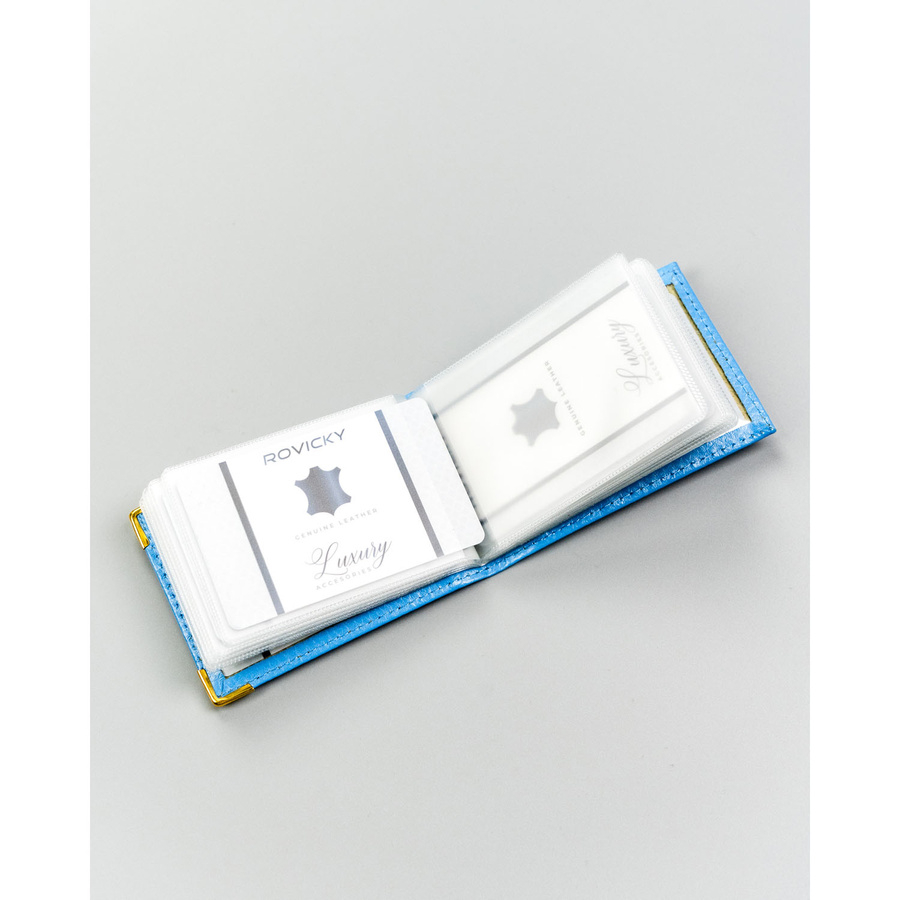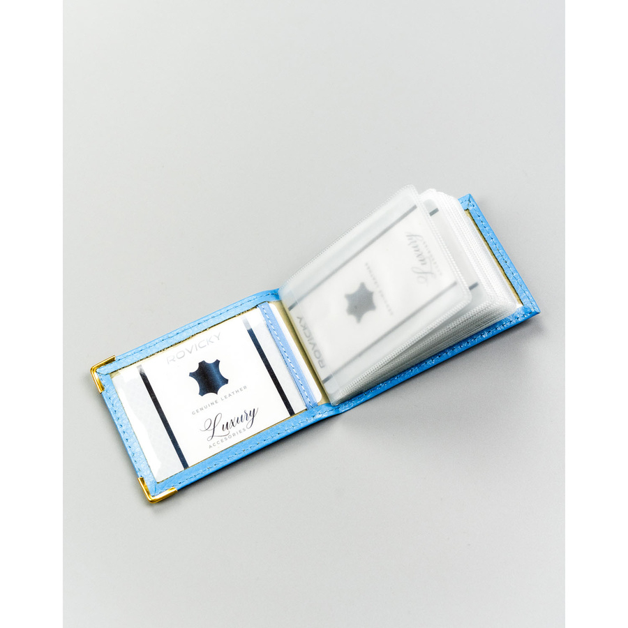 Skórzane, błękitne etui na karty