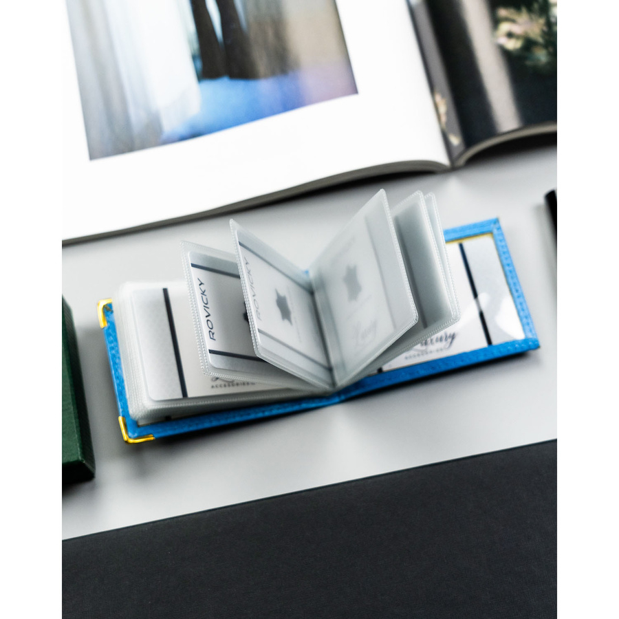 Transparentne koszulki umożliwiają szybkie odnalezienie potrzebnej karty bez konieczności wyjmowania jej z etui. Całość zamyka się w kompaktowej, smukłej formie, która nie zajmuje dużo miejsca.