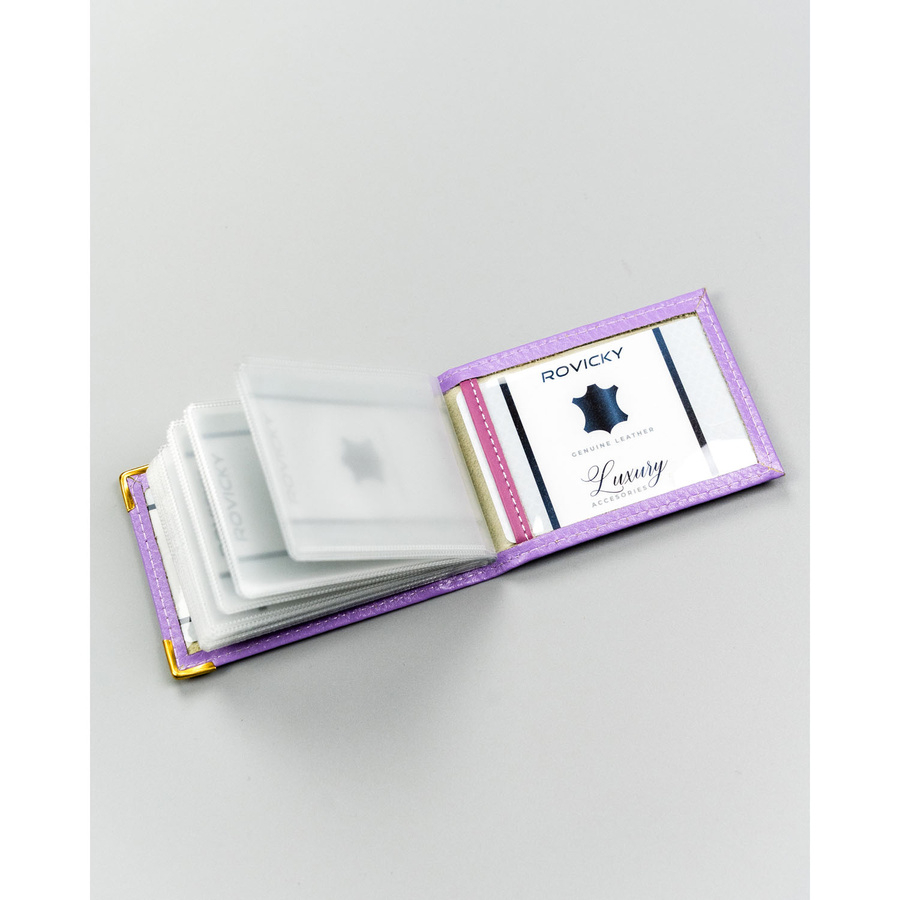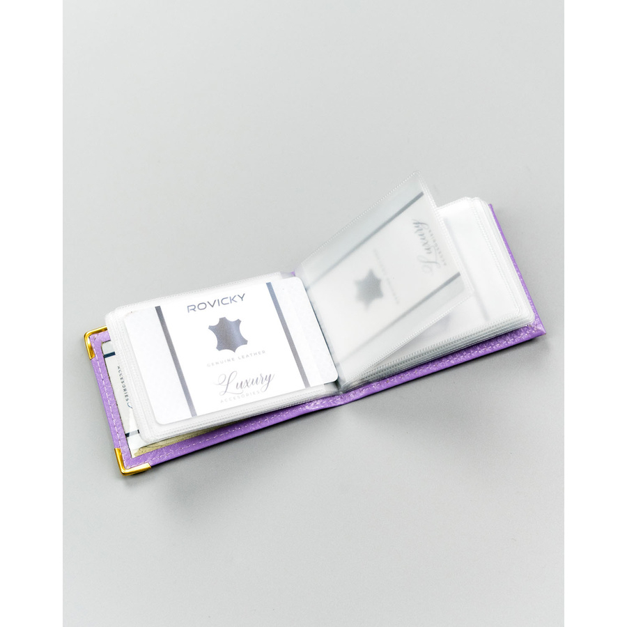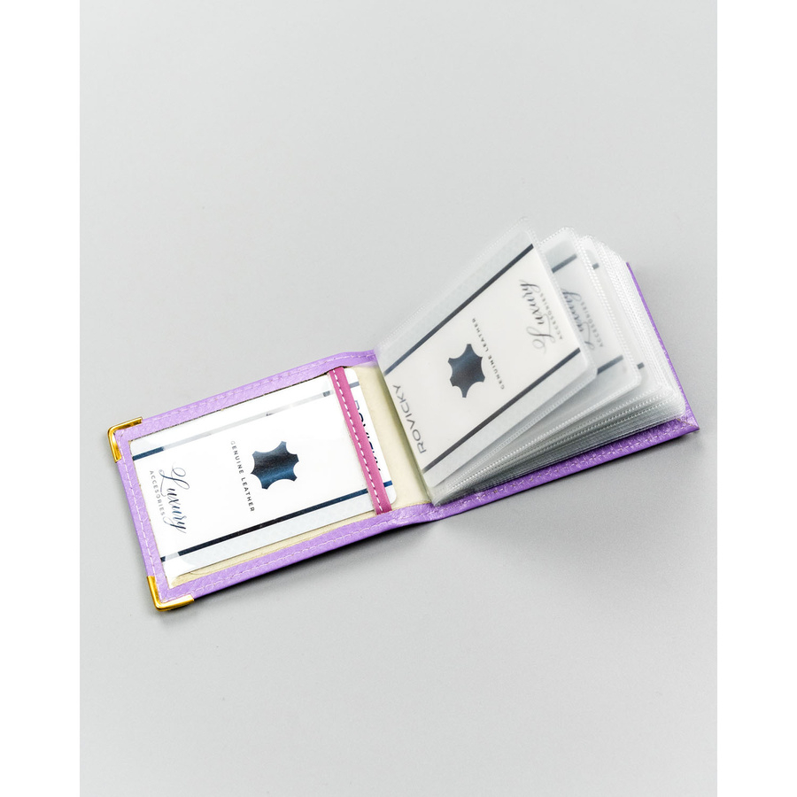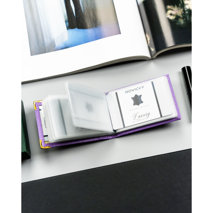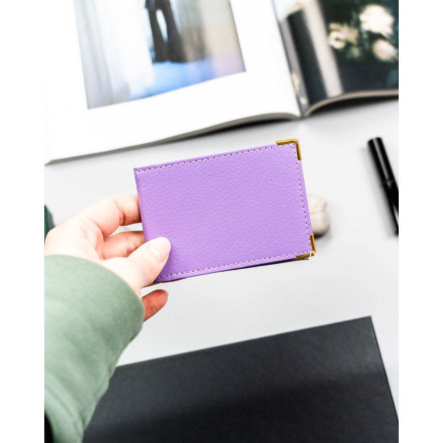 Fioletowe, skórzane etui na karty