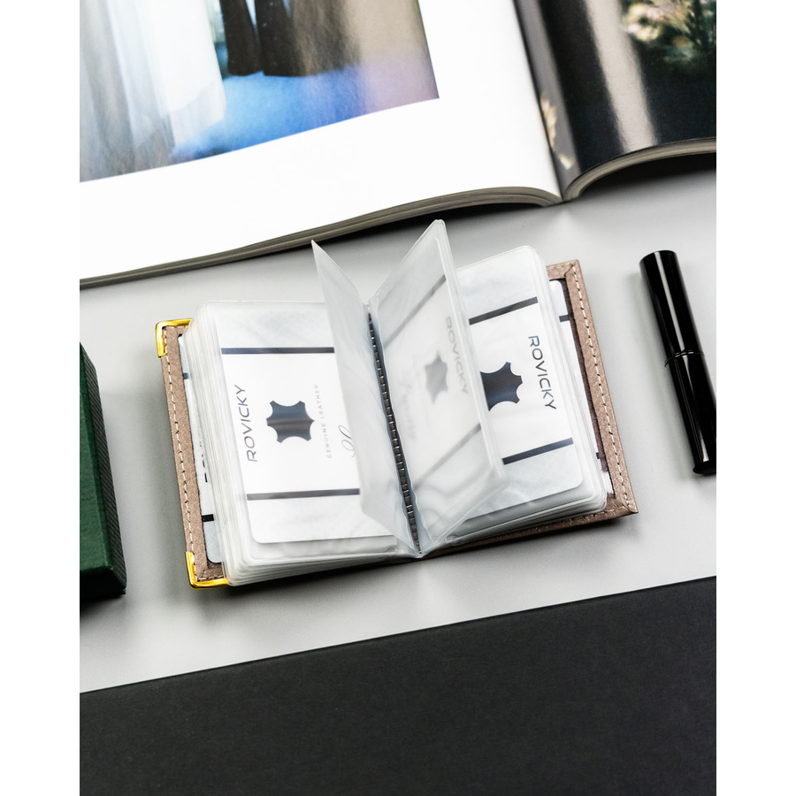 Transparentne koszulki umożliwiają szybkie odnalezienie potrzebnej karty bez konieczności wyjmowania jej z etui. Całość zamyka się w kompaktowej, smukłej formie, która nie zajmuje dużo miejsca.