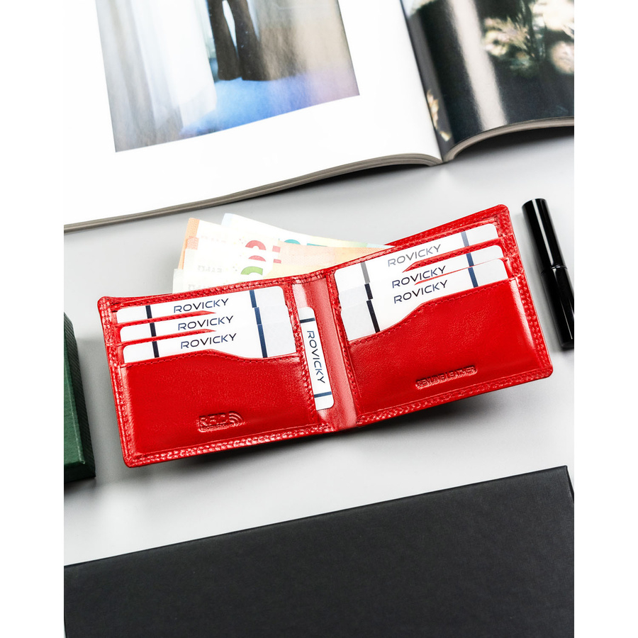Małe, poziome, czerwone etui na karty ze skóry naturalnej - 4U Cavaldi