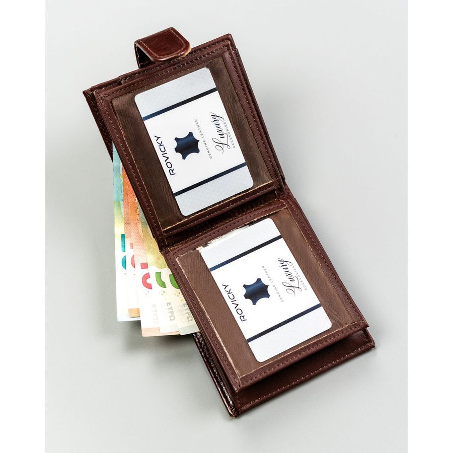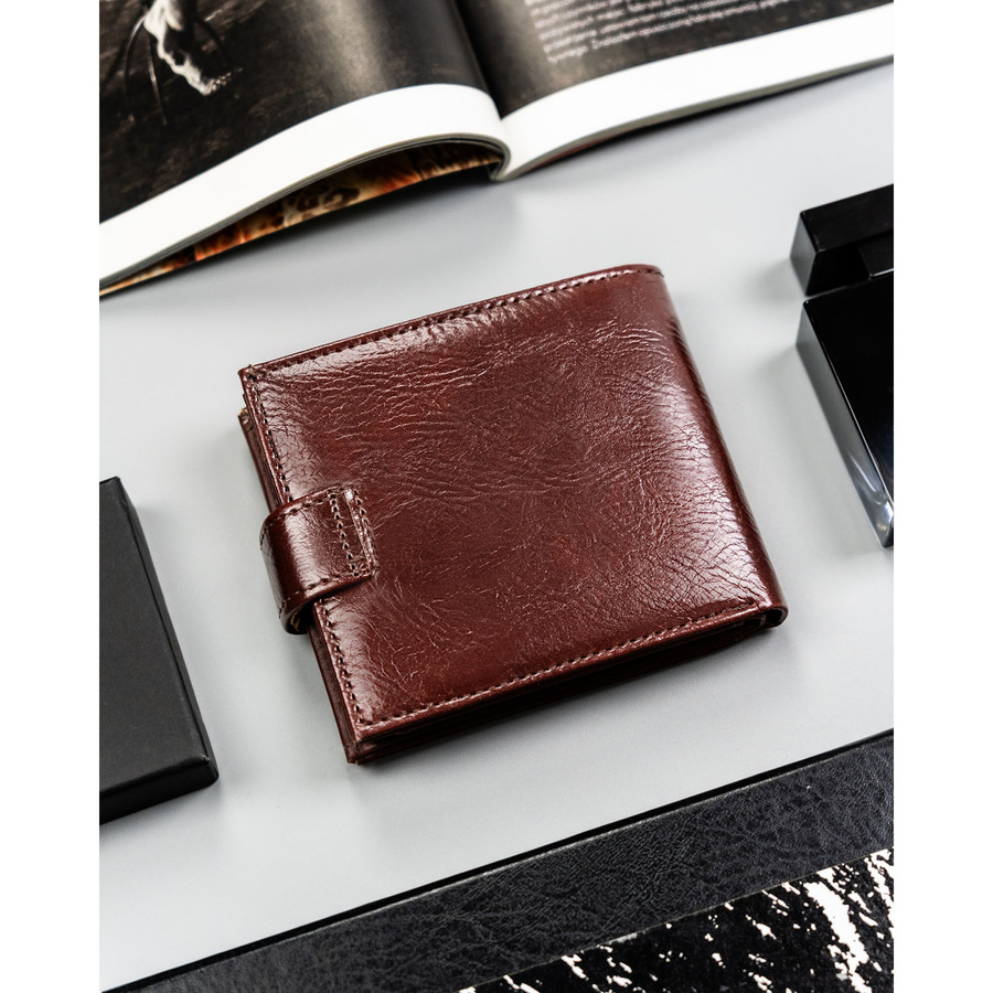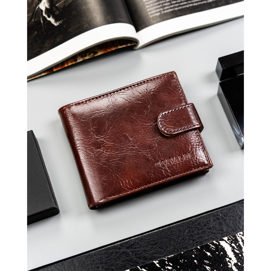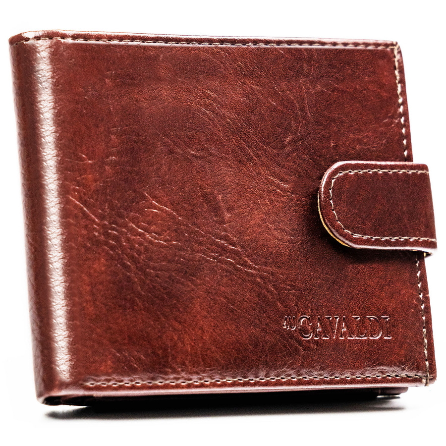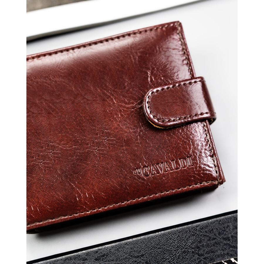 Brązowy portfel męski ze skóry ekologicznej zapinany na zatrzask - 4U Cavaldi