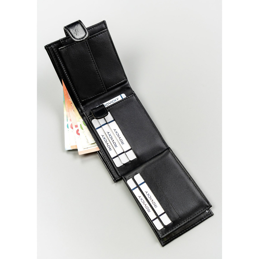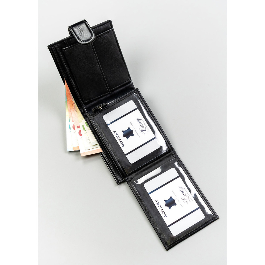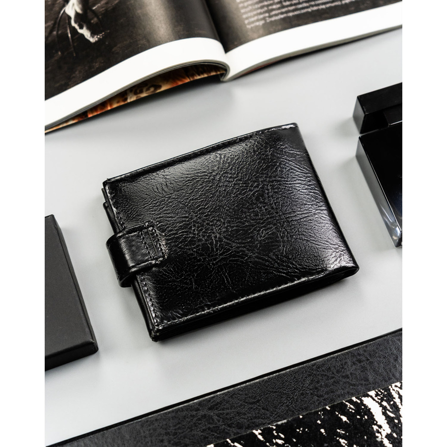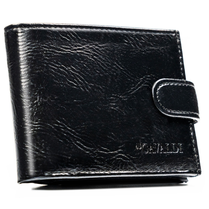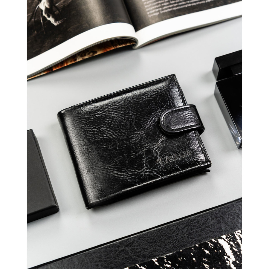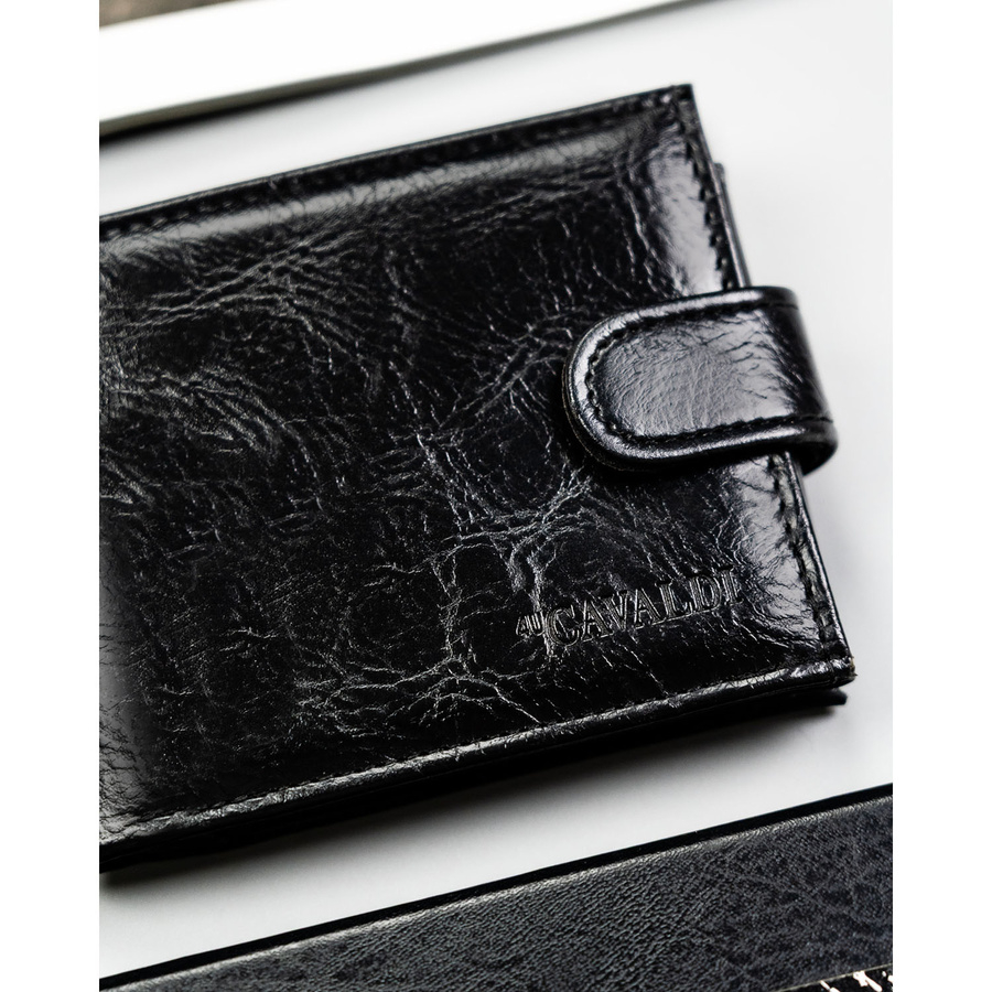 Czarny portfel męski ze skóry ekologicznej zamykany zatrzaskiem - 4U Cavaldi