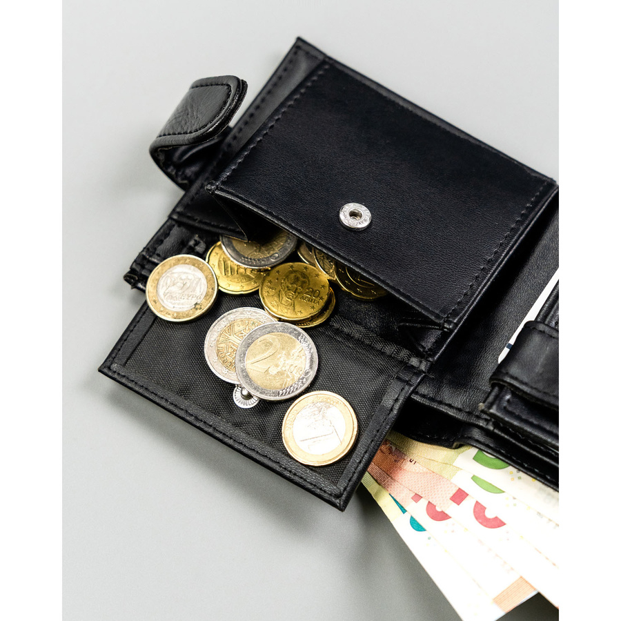 • 1 kieszeń na bilon zapinana na solidny zatrzask.