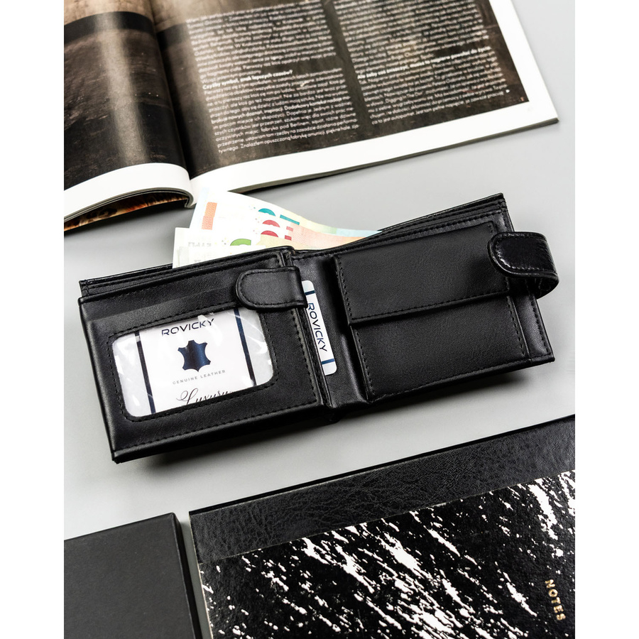 Portfel będzie idealnym wyborem również dla tradycjonalistów noszących na co dzień większe ilości gotówki. Ten model wyposażono w: