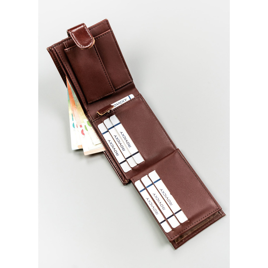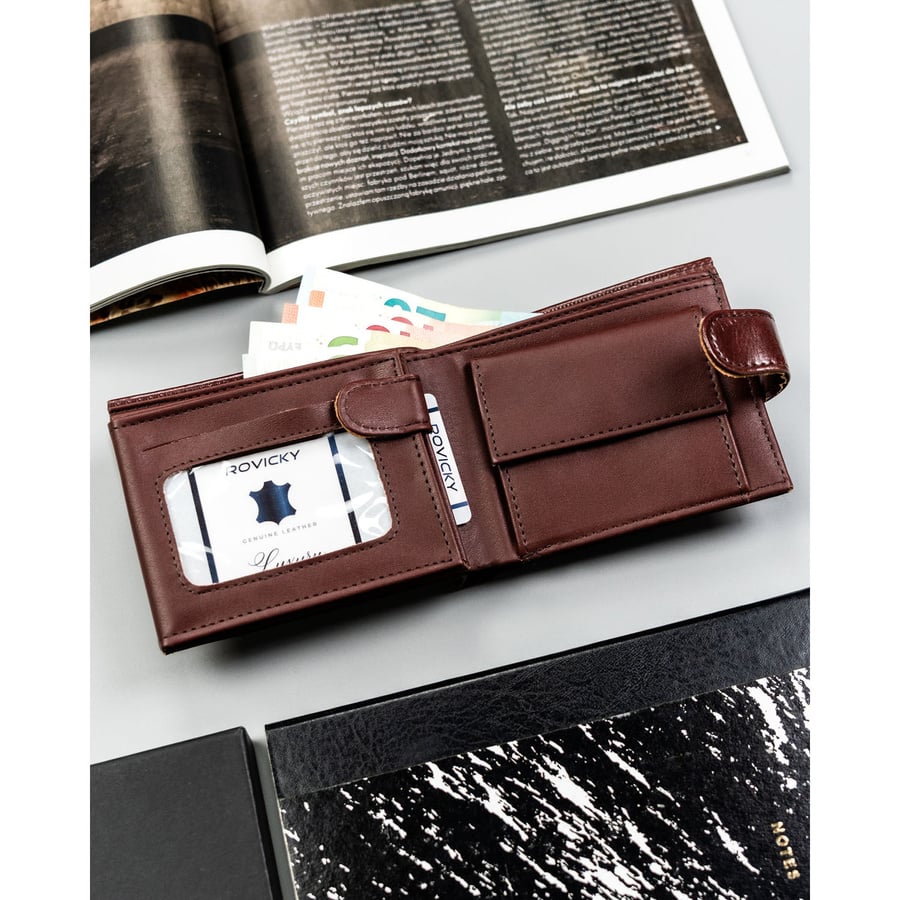 Portfel będzie idealnym wyborem również dla tradycjonalistów noszących na co dzień większe ilości gotówki. Ten model wyposażono w: