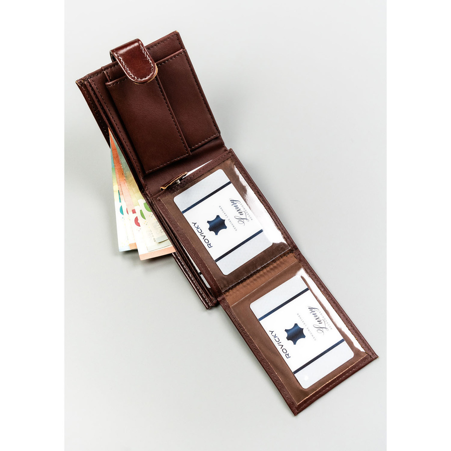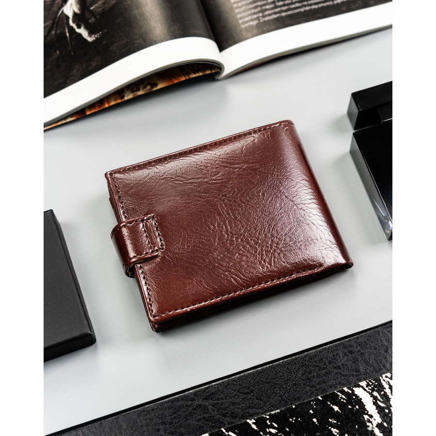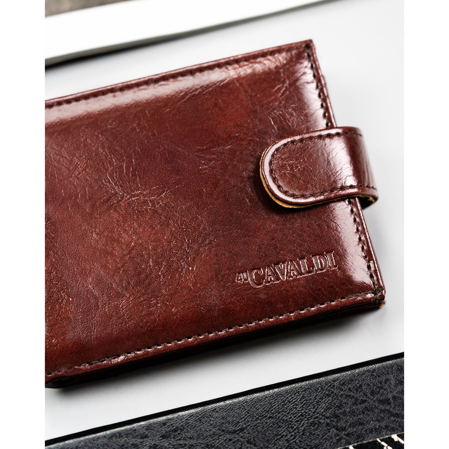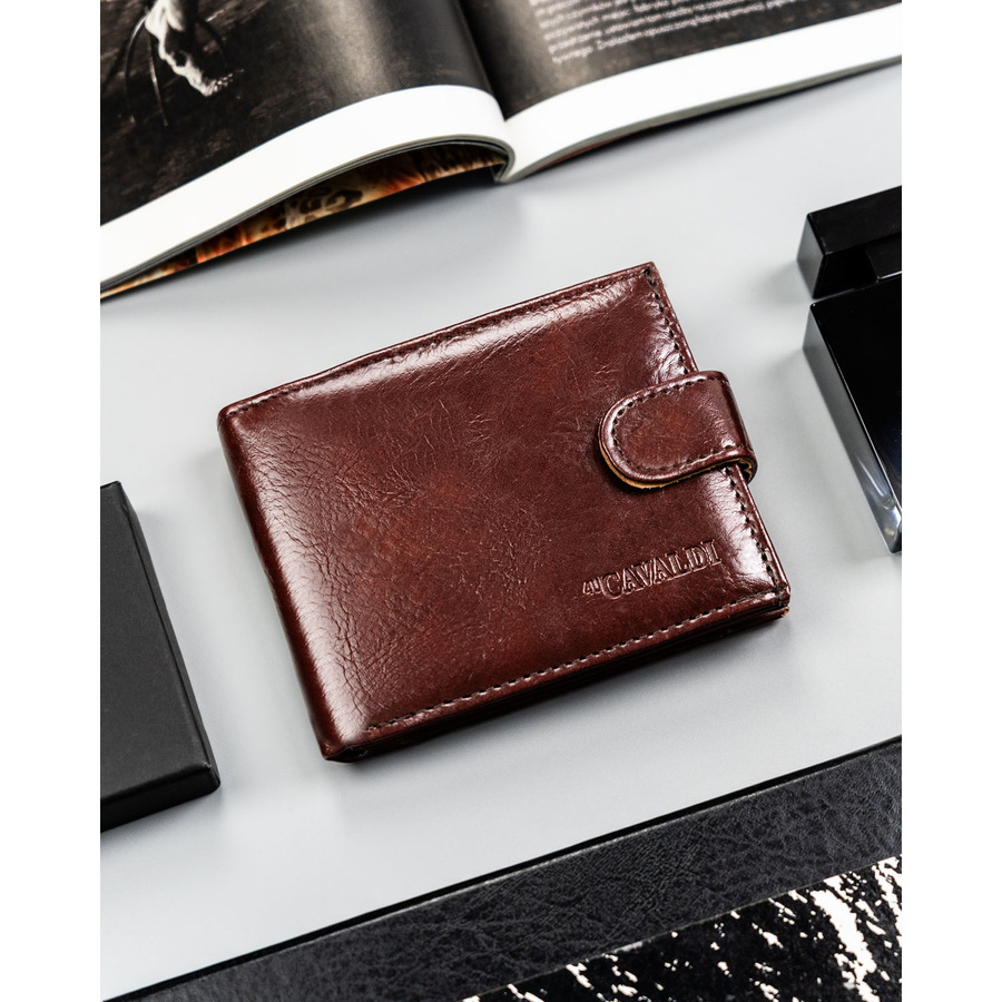 Brązowy portfel męski ze skóry ekologicznej zamykany zatrzaskiem - 4U Cavaldi