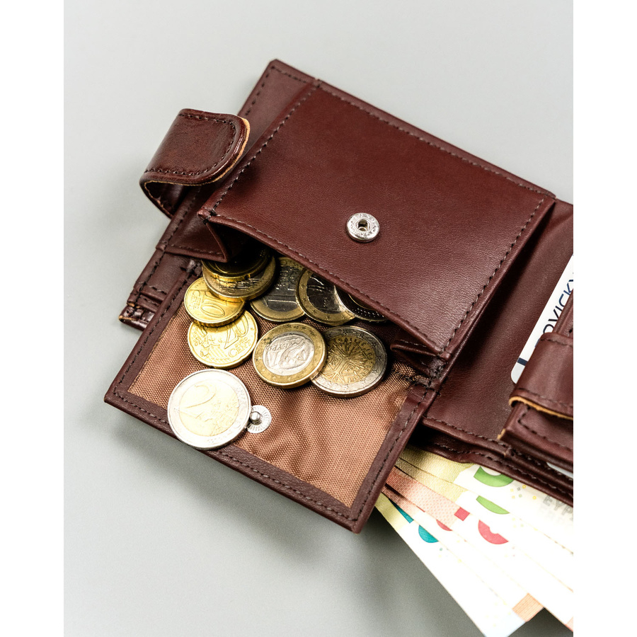 • 1 kieszeń na bilon zapinana na solidny zatrzask.