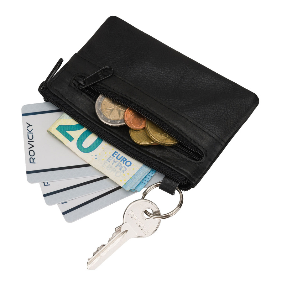 Skórzane etui na klucze w czarnym kolorze zamykane suwakiem