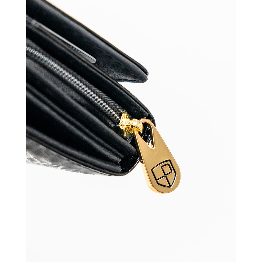 - Model został wyposażony w 3 pojemne przegrody na banknoty, co umożliwia łatwe sortowanie gotówki - na przykład według walut, nominałów lub celów wydatkowych.