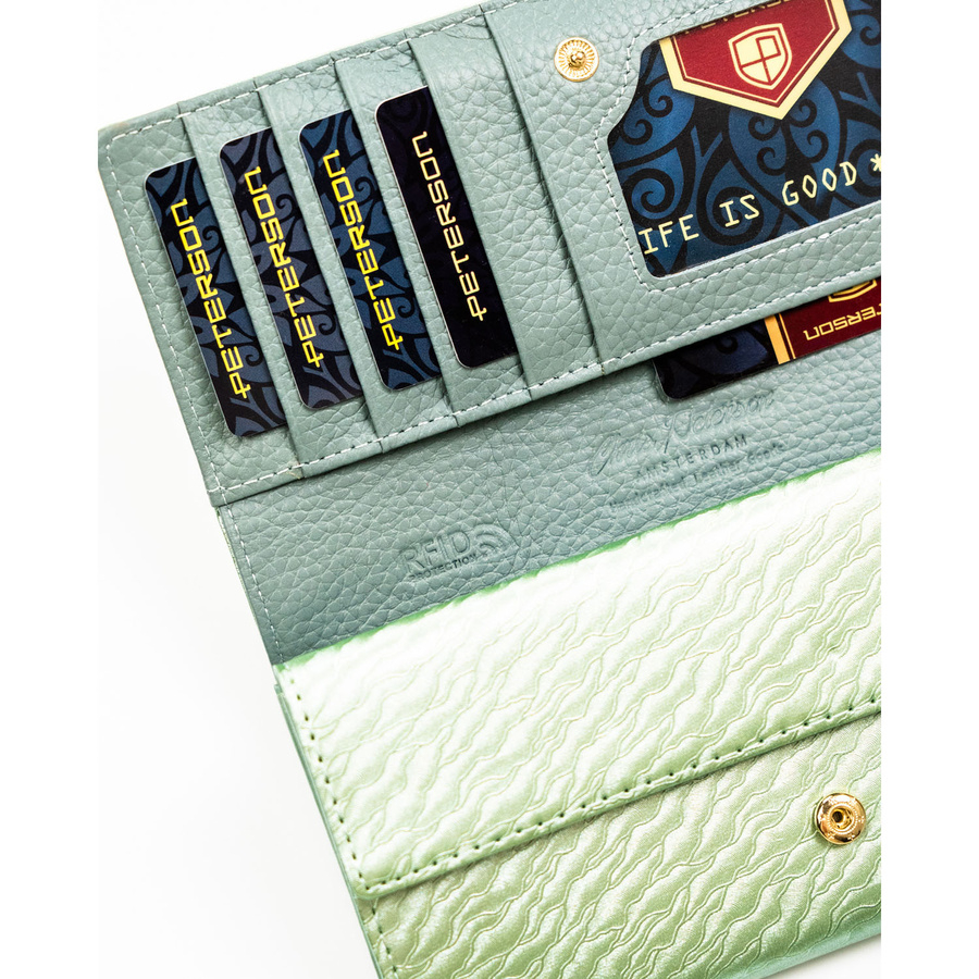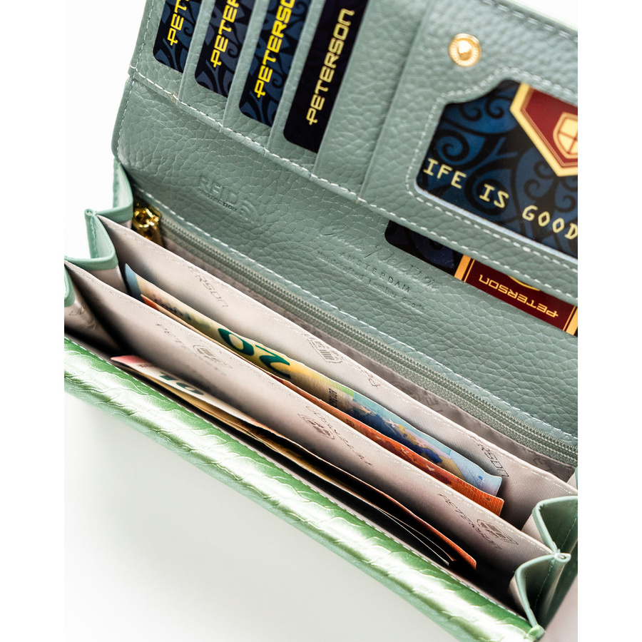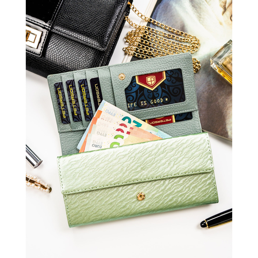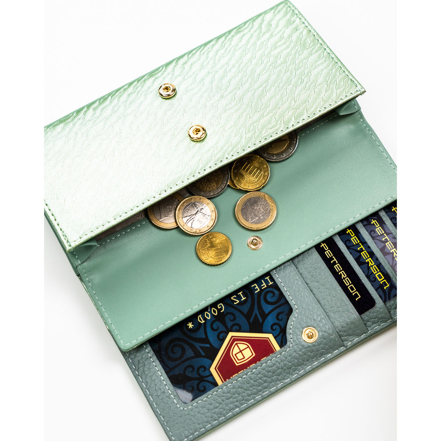 Duży portfel damski w jasnozielonym kolorze zamykany na zatrzask - Peterson