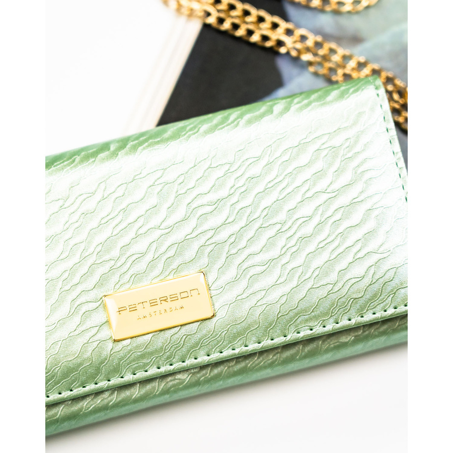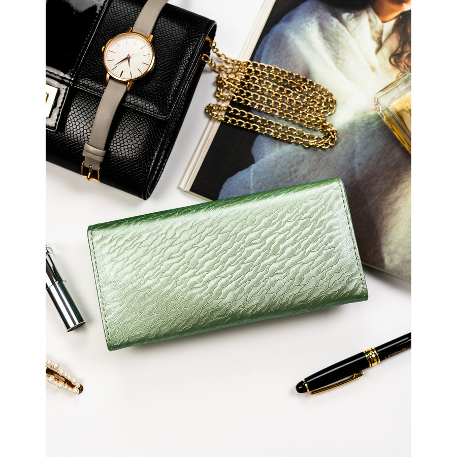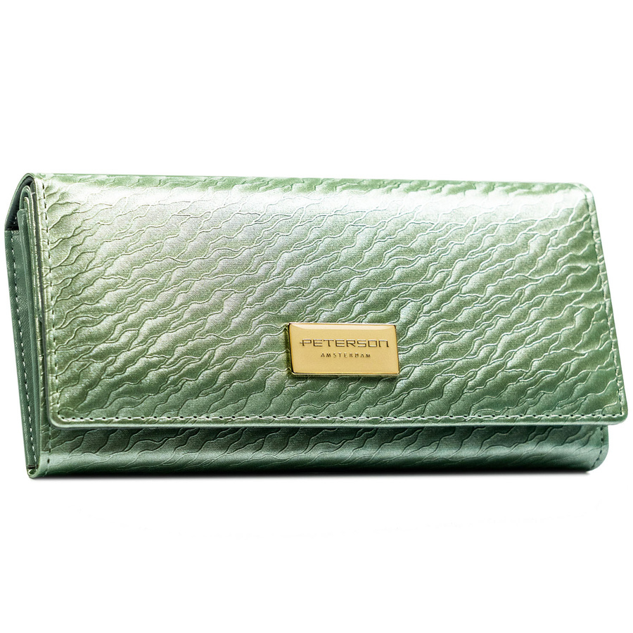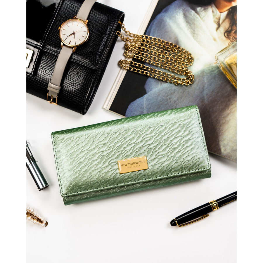 Duży portfel damski w jasnozielonym kolorze zamykany na zatrzask - Peterson