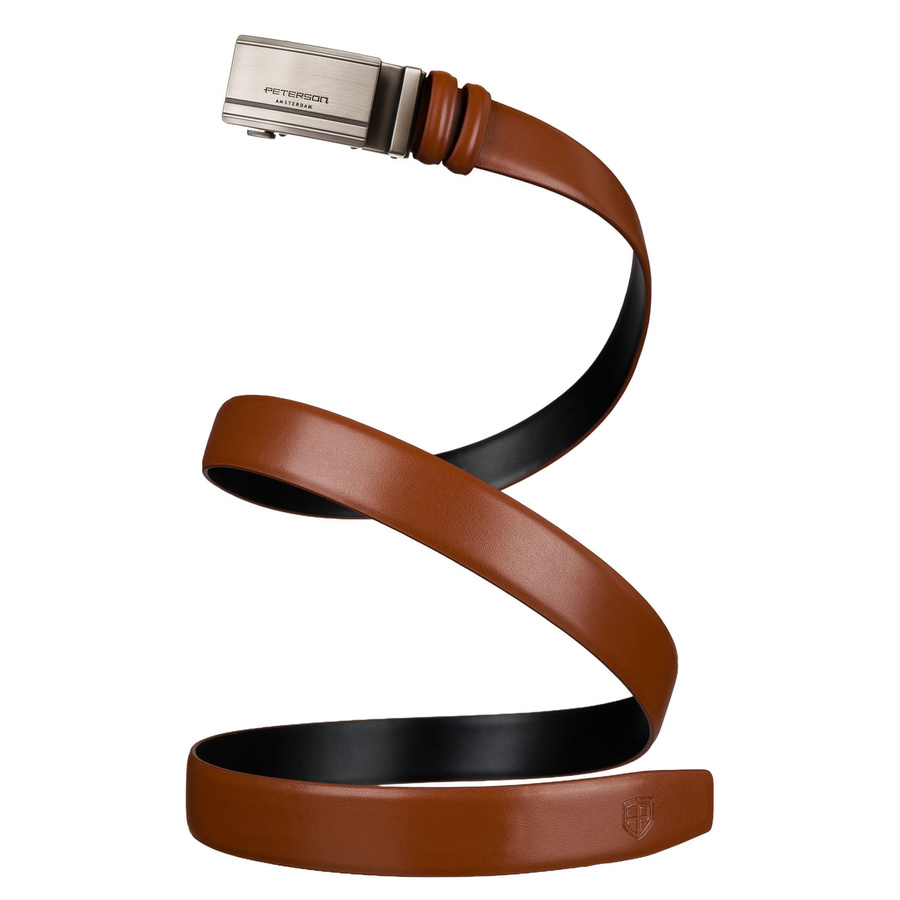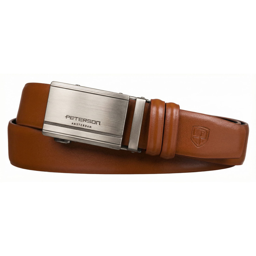 Skórzany pasek męski w jasnobrązowym kolorze z automatyczną klamrą - Peterson