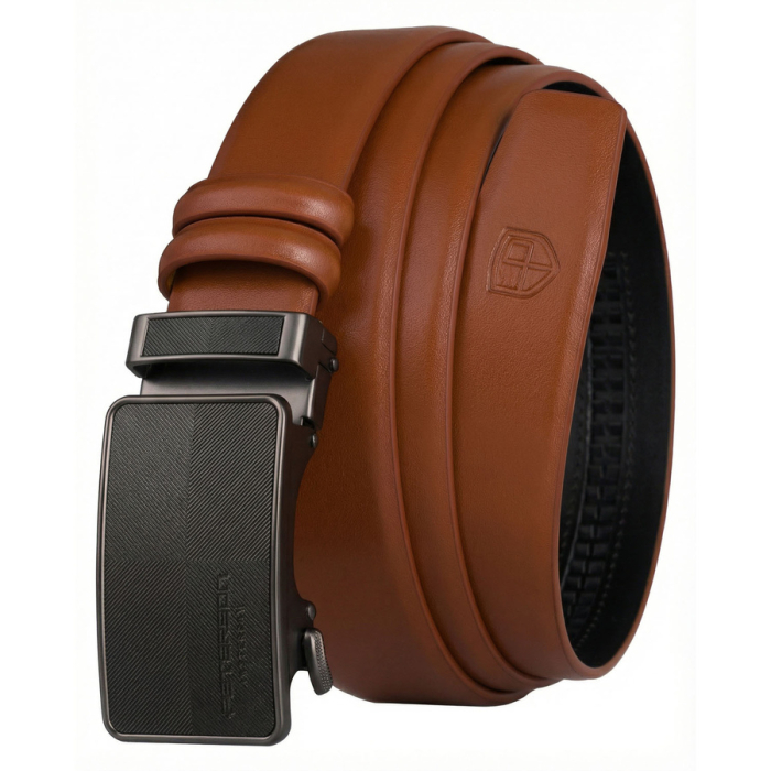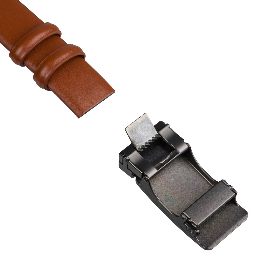 Skórzany pasek męski w jasnobrązowym kolorze z automatyczną, czarną klamrą - Peterson