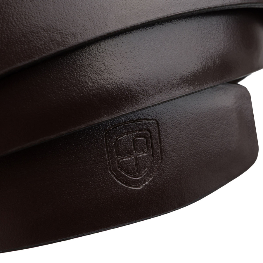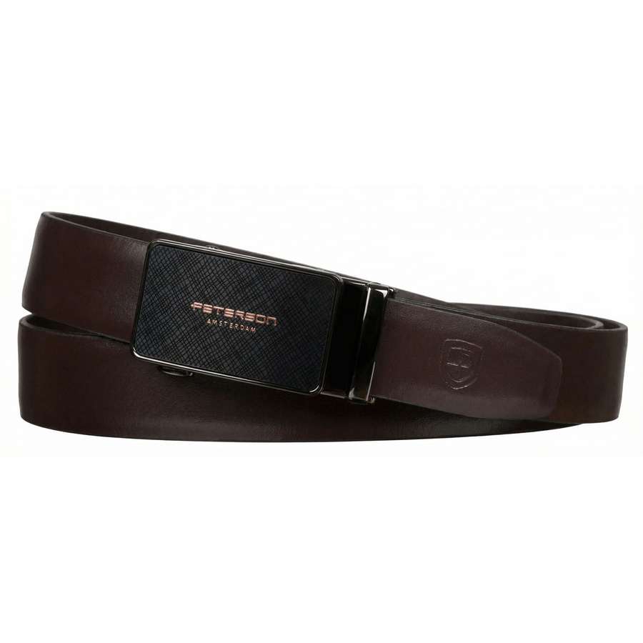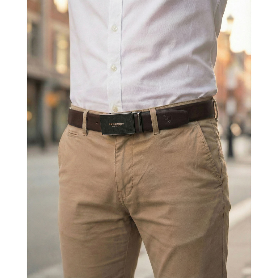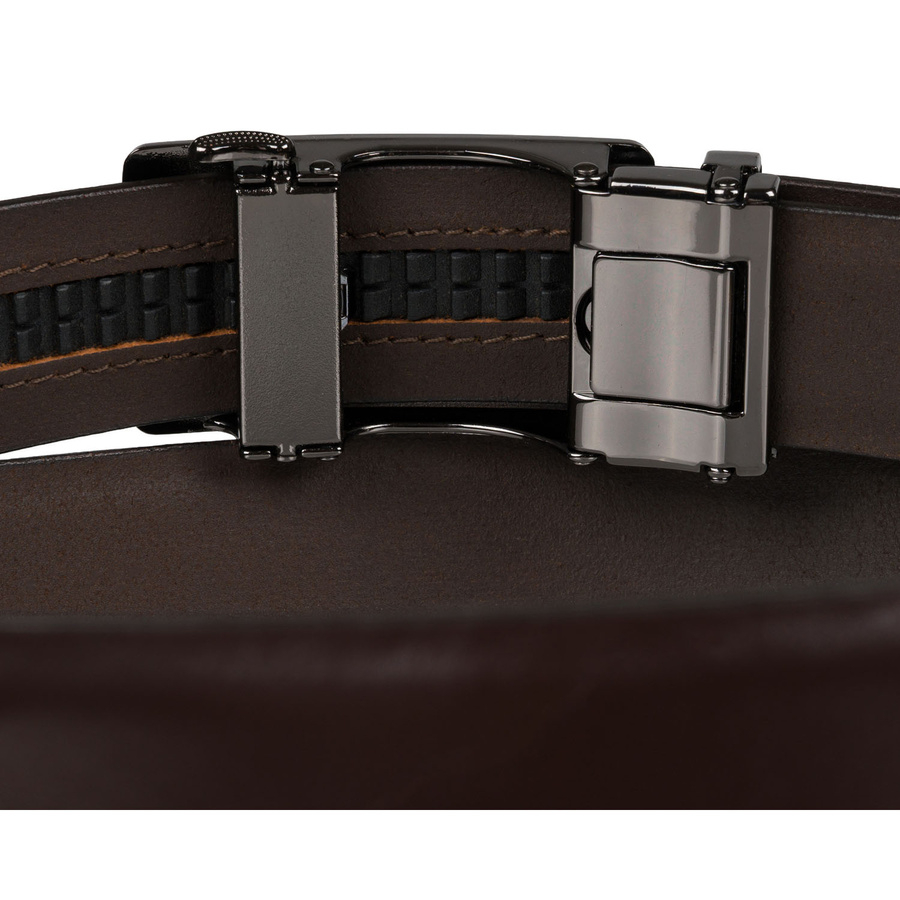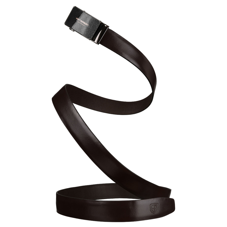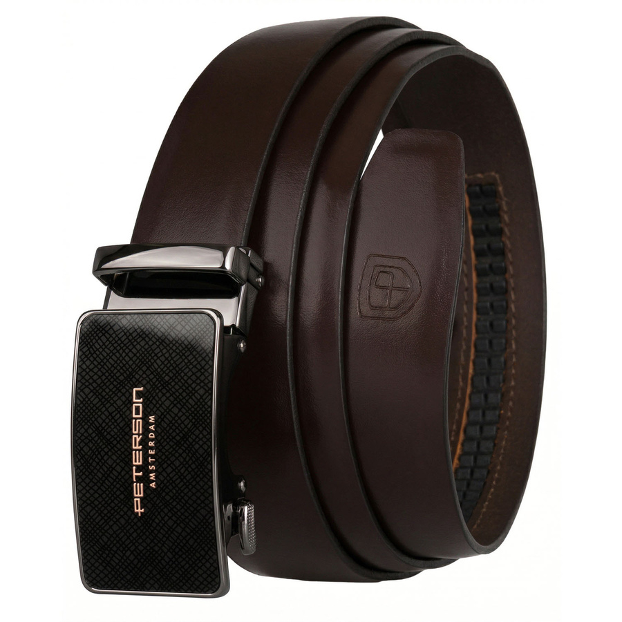 Skórzany, solidny pasek męski w ciemnobrązowym kolorze z automatyczną klamrą - Peterson