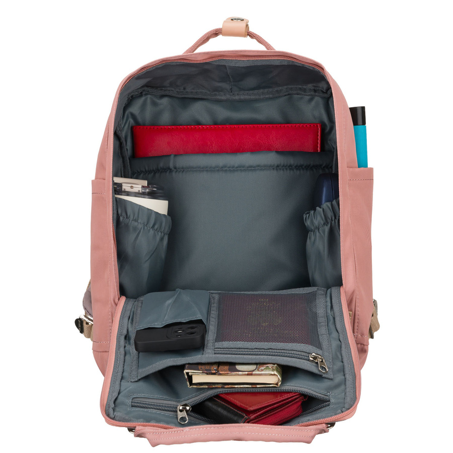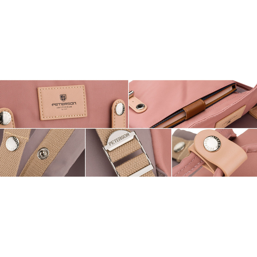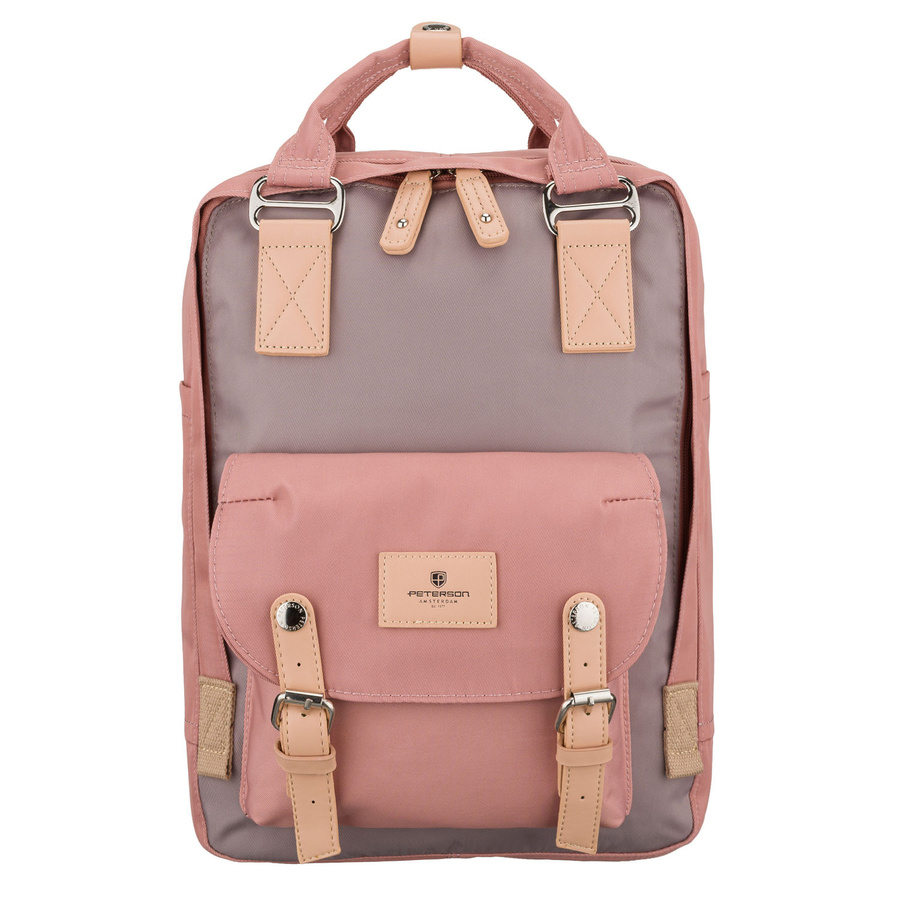 Rucsac de damă roz și gri din poliester și piele ecologică, cu un singur compartiment - Peterson PTR-PTN GAMMA WOODROSE-G
