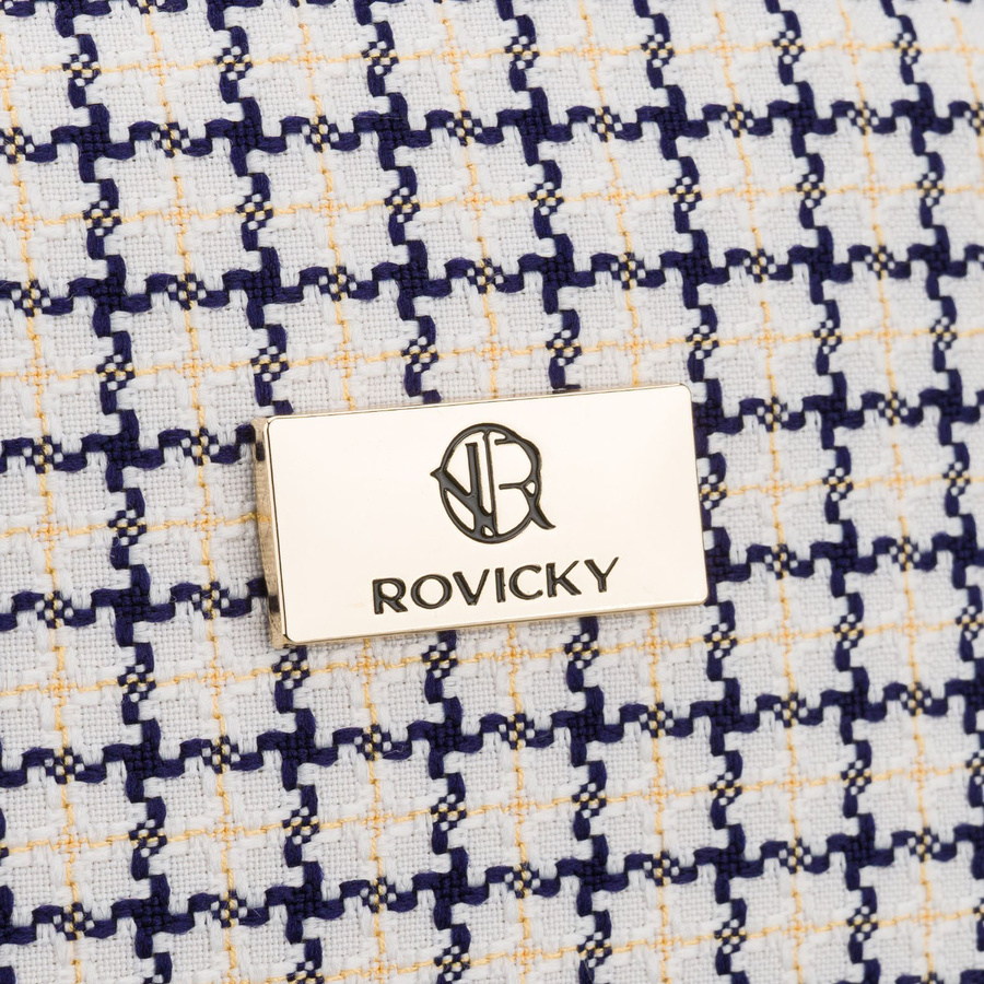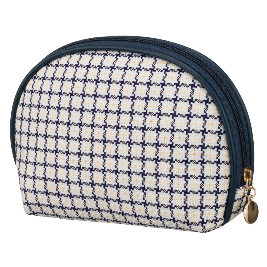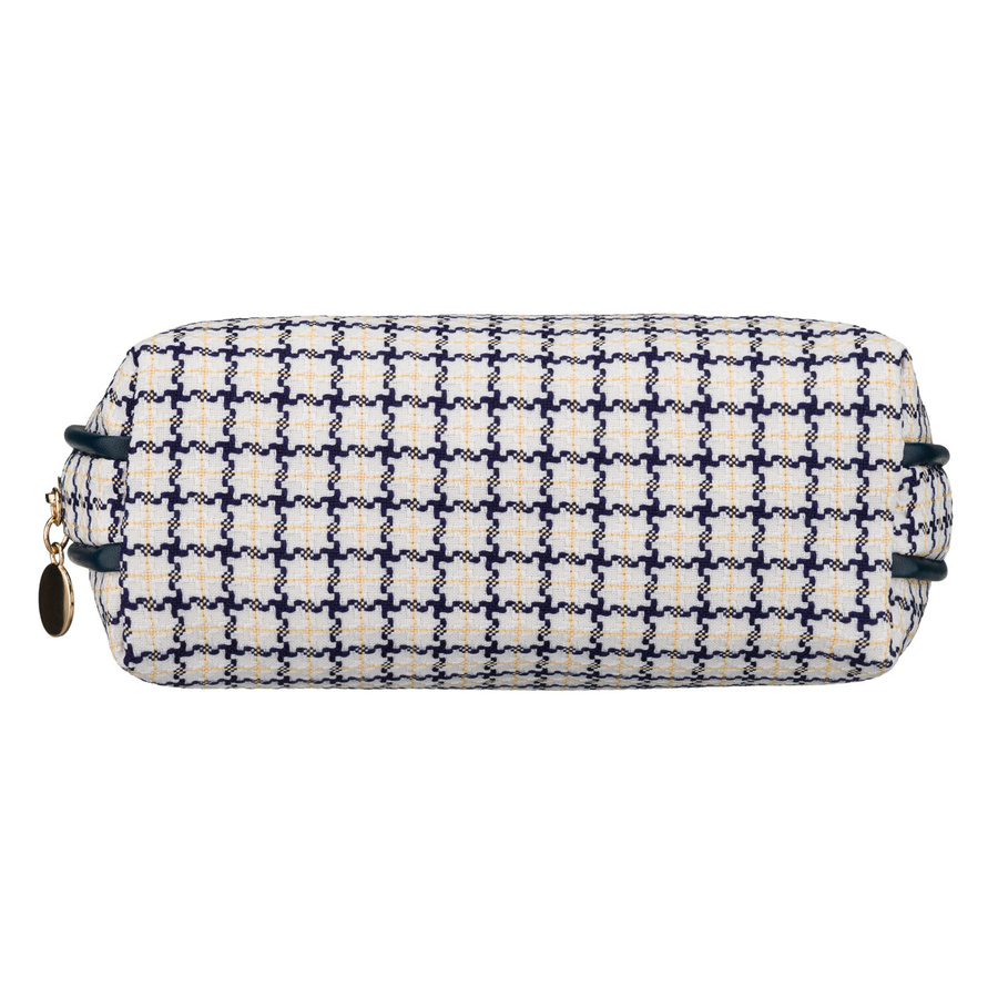 Beżowo-granatowa kosmetyczka damska w kratę zamykana suwakiem - Rovicky
