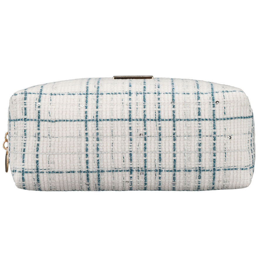 • Wzór kratki z dodatkiem drobnych, połyskujących cekinów, które przyciągają wzrok.