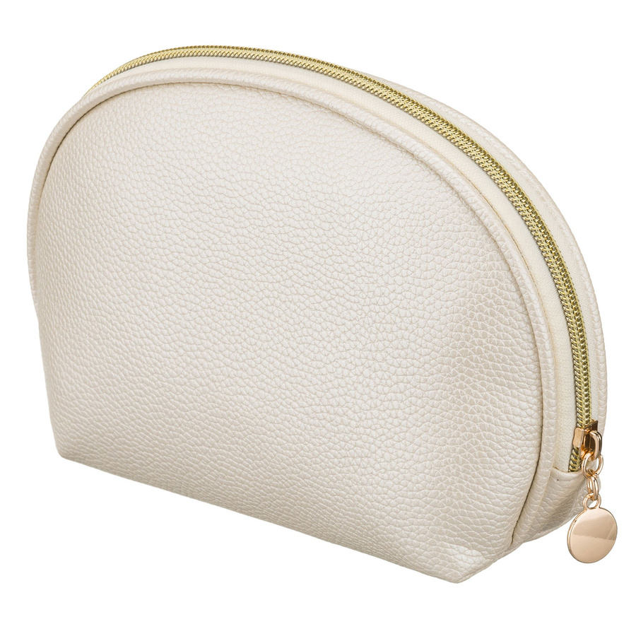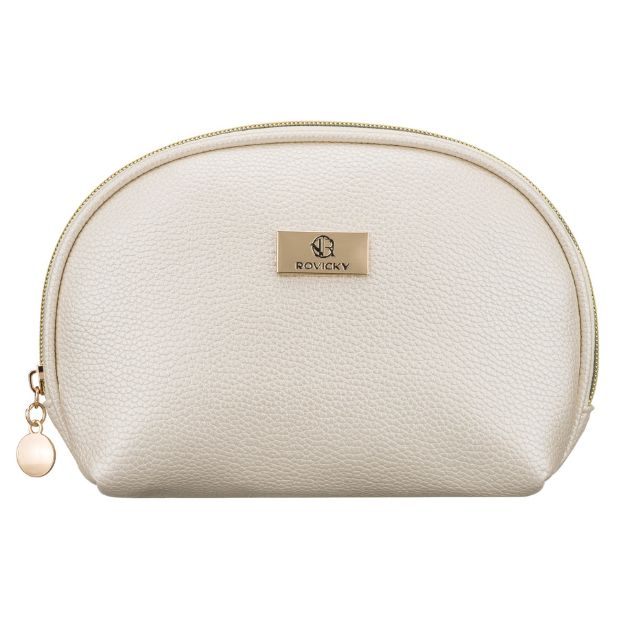 Beżowa kosmetyczka ze skóry ekologicznej, jednokomorowa i zamykana suwakiem - Rovicky