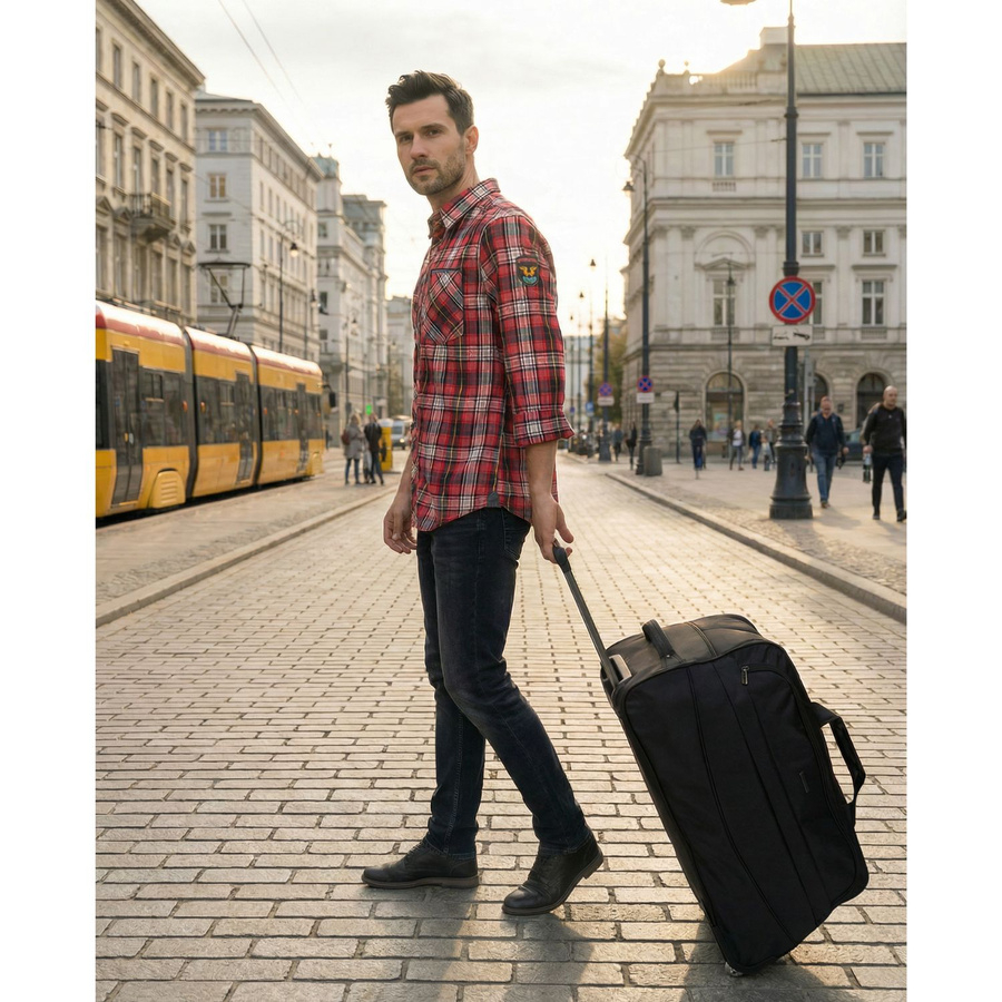 Dzięki dużej pojemności i kółkom to torba, która łączy funkcjonalność walizki z elastycznością torby podróżnej.