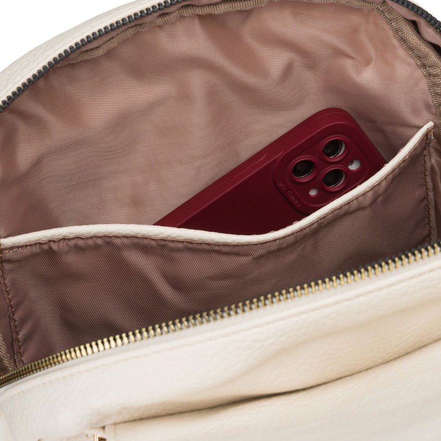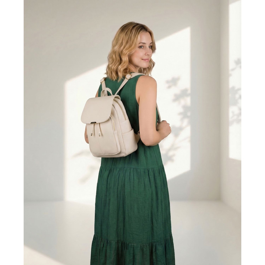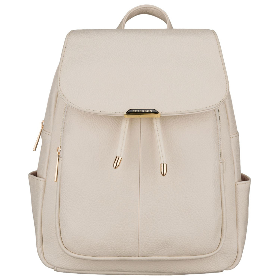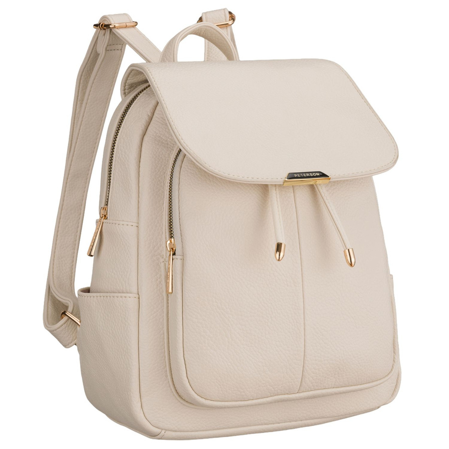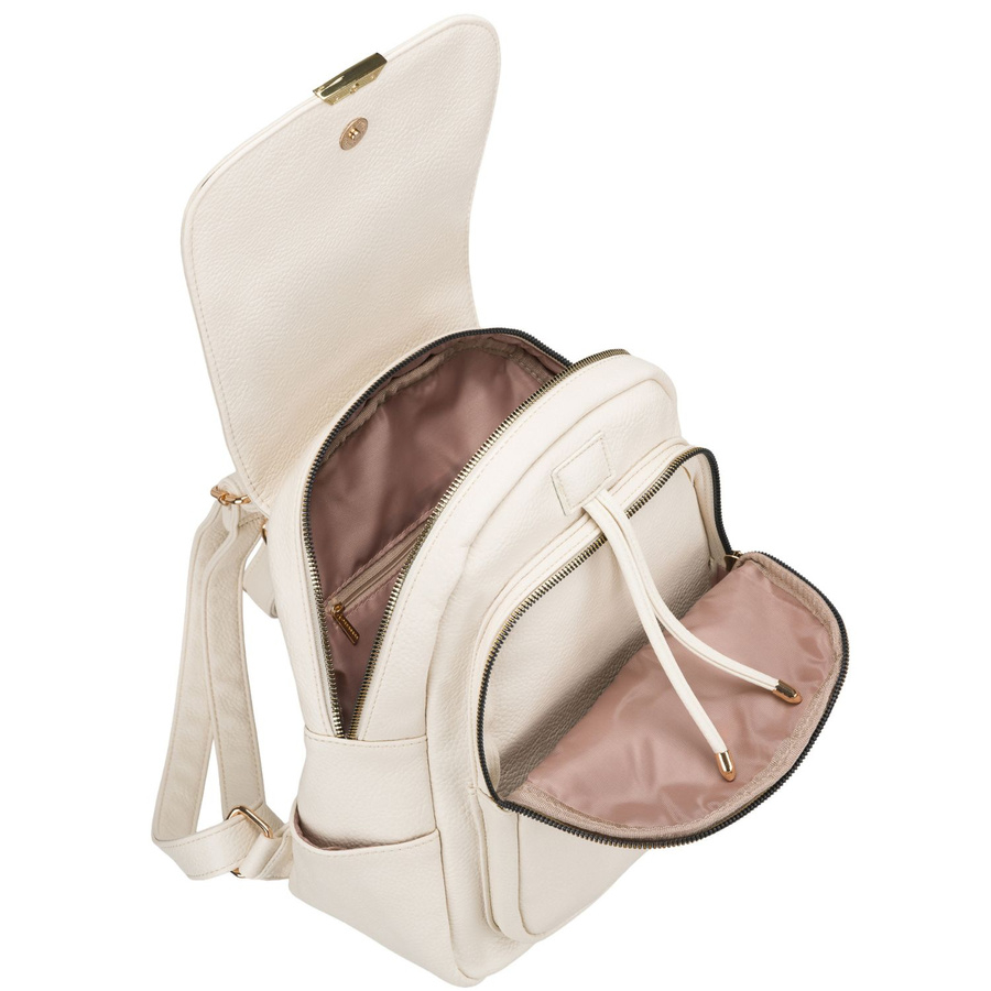 Mały plecak damski ze skóry ekologicznej beżowy miejski z klapką - Peterson