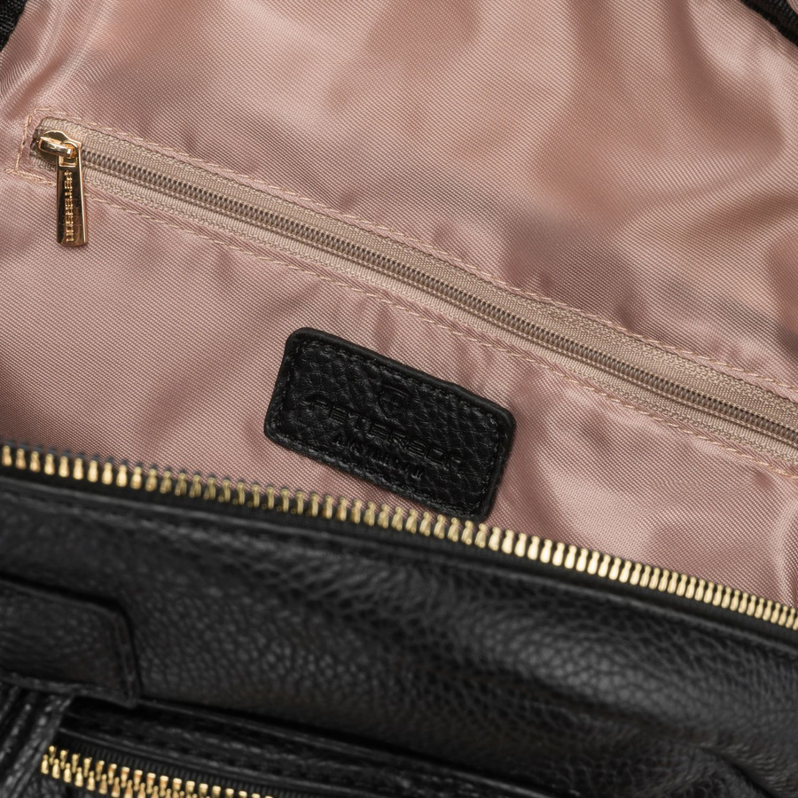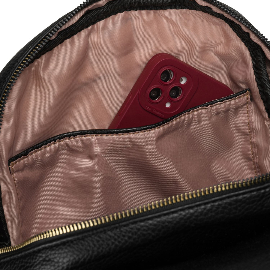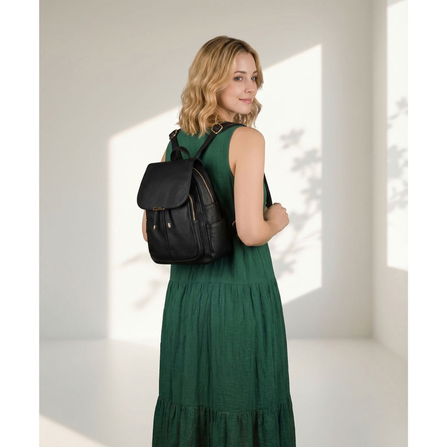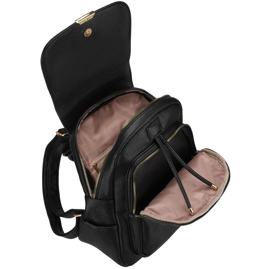 Klasyczny kolor w połączeniu ze złotymi detalami tworzy ponadczasowy, elegancki look. Plecak świetnie komponuje się zarówno z casualowymi stylizacjami, jak i bardziej eleganckimi outfitami - dodając im szyku i nowoczesności.