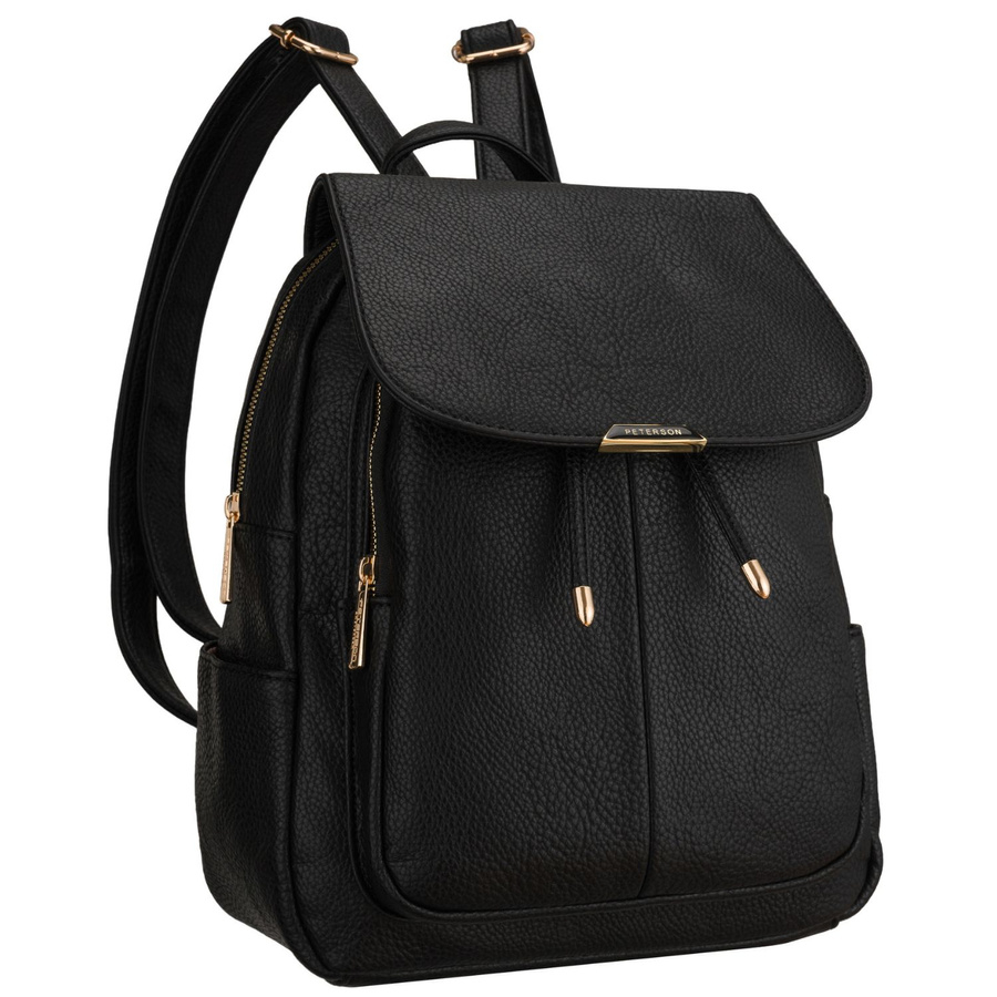 Miejski plecak damski mały czarny ze skóry ekologicznej - Peterson