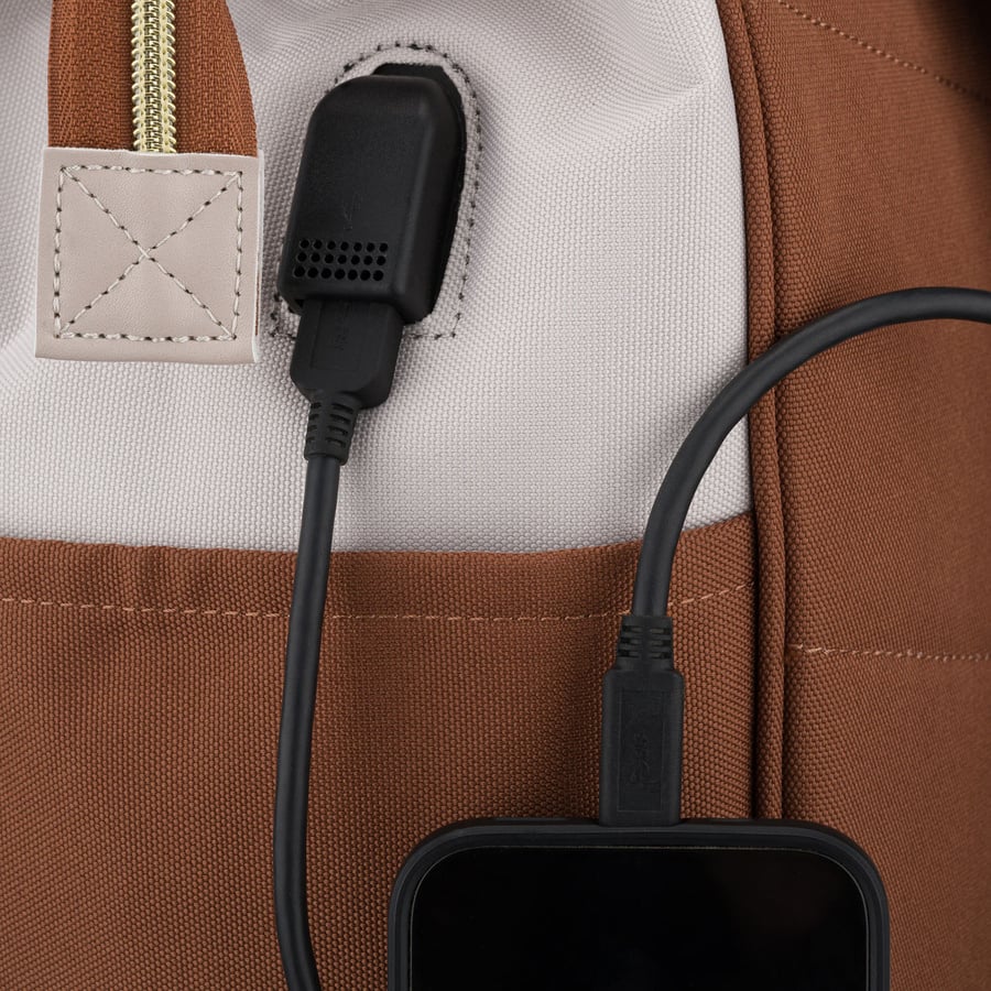 Nu mai trebuie să vă faceți griji că telefonul rămâne fără baterie! Acest rucsac dispune de un port USB convenabil , permițându-vă să conectați convenabil o baterie externă și să încărcați dispozitivele mobile oriunde. Portul este situat pe lateralul rucsacului, astfel încât să vă puteți încărca telefonul fără a fi nevoie să deschideți rucsacul - ideal pentru persoanele active care vor să rămână mereu conectate.