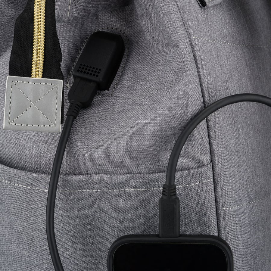 Nu mai trebuie să vă faceți griji că telefonul rămâne fără baterie! Acest rucsac dispune de un port USB convenabil , permițându-vă să conectați convenabil o baterie externă și să încărcați dispozitivele mobile oriunde. Portul este situat pe lateralul rucsacului, astfel încât să vă puteți încărca telefonul fără a fi nevoie să deschideți rucsacul - ideal pentru persoanele active care vor să rămână mereu conectate.