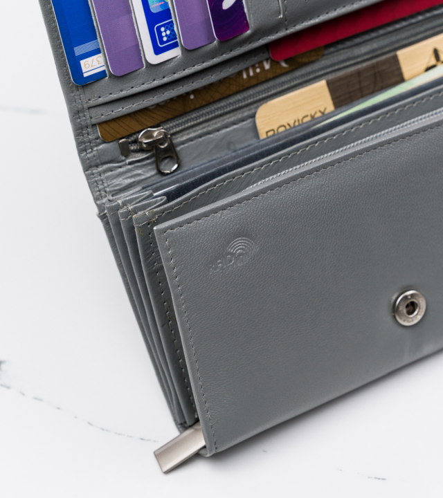 Cel mai înalt nivel de protecție pentru cardurile dvs Echipat cu tehnologie RFID, care protejează cardul din portofel împotriva furtului de fonduri din cont;