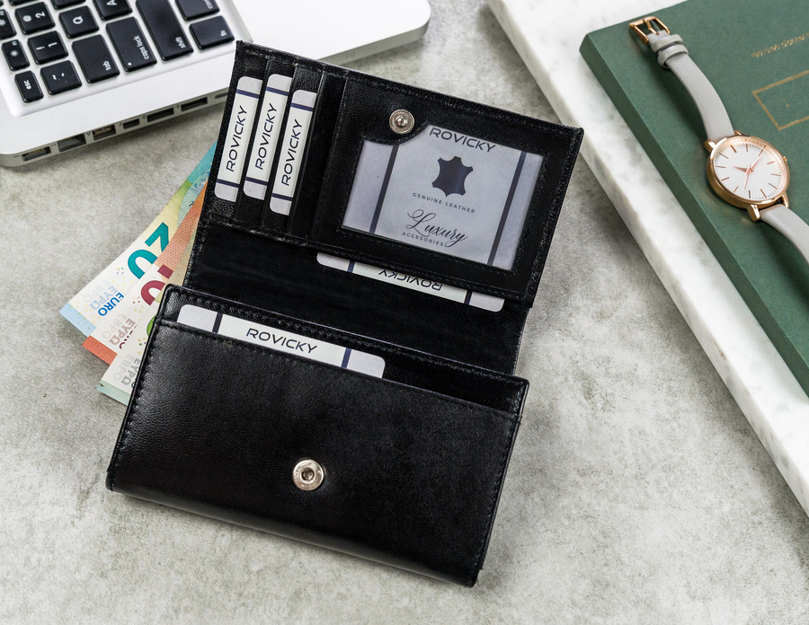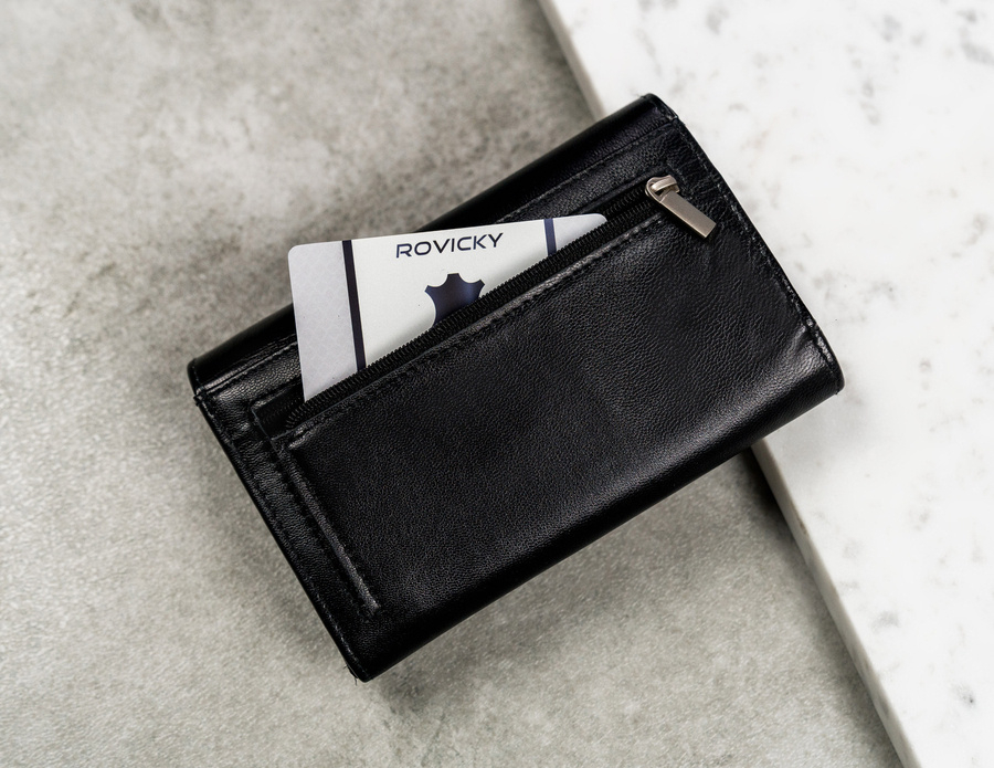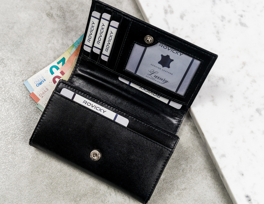 Buzunarul de pe spatele portofelului este foarte convenabil. Fiecare dintre noi are lucruri mici în posesia noastră care nu sunt suficient de importante pentru a fi păstrate într-un portofel închis în siguranță. Buzunarele exterioare pot fi folosite, de exemplu, ca loc pentru biletele de transport public de unică folosință. Decide singur :)
