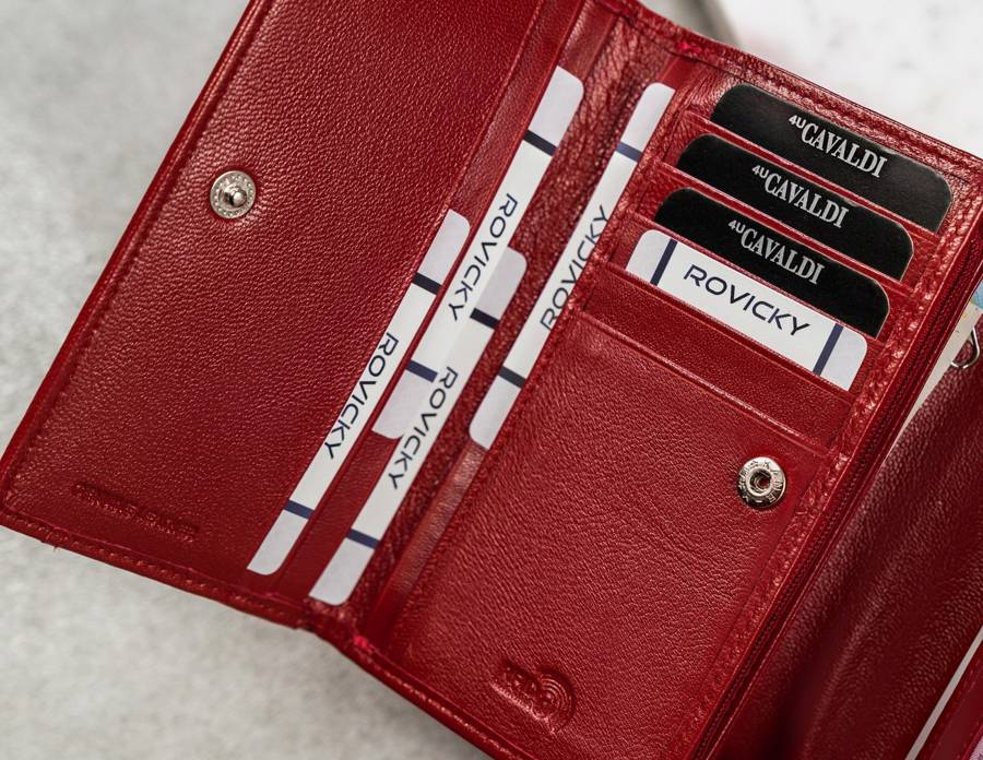 Portofel de dama incapator, orizontal, din piele naturala cu sistem RFID - Cavaldi