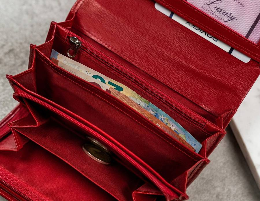 1 compartiment în partea centrală a portofelului, închis cu fermoar