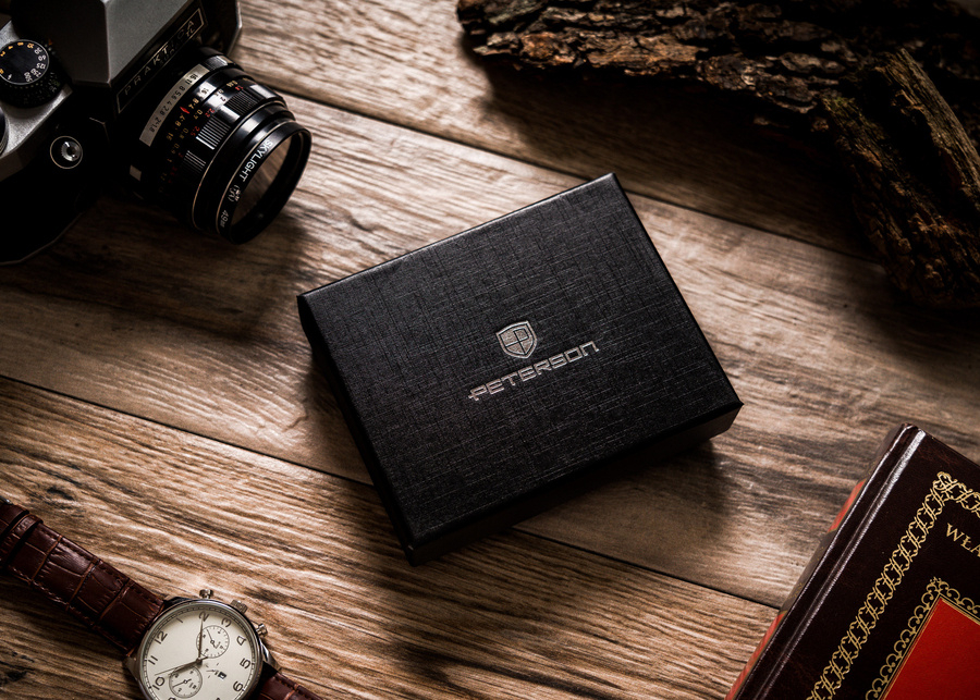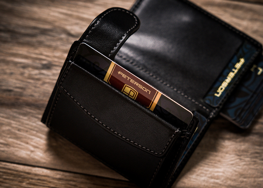 Un portofel elegant de la marca poloneză PETERSON®. Este fabricat din piele ecologică netedă, de înaltă calitate. Fixat cu cataramă și zăvor solid. Un logo minimalist al mărcii este gravat în față