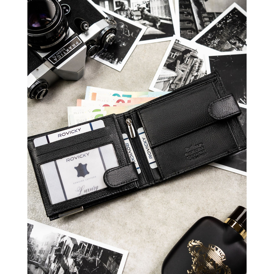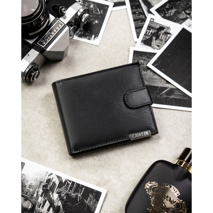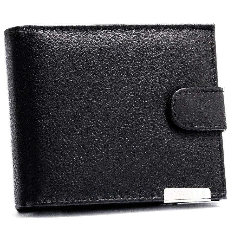 Portofel mare bărbătesc din piele naturală, de culoare neagră, cu închidere cu capsă - 4U Cavaldi