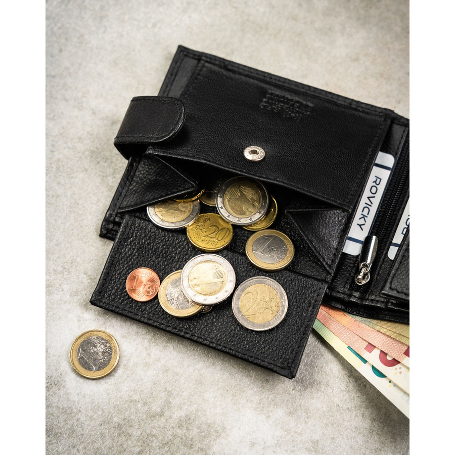 Este prevăzut un compartiment separat pentru monede, asigurându-vă că acestea nu interferează cu utilizarea zilnică sau nu deteriorează interiorul portofelului.