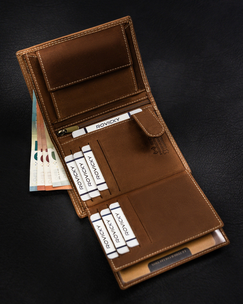 Are un interior extins - va fi alegerea perfecta pentru tine daca porti zilnic documente de format mare, cum ar fi un certificat de inmatriculare. În plus, puteți încadra în ele cantități mari de carduri și numerar.