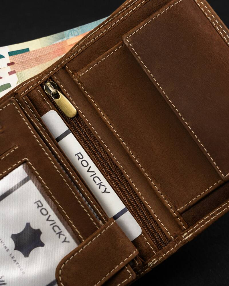 Interiorul portofelului a fost proiectat astfel încât să încapă toate cardurile, documentele și banii de care aveți nevoie zilnic. În plus, interiorul este căptușit cu o căptușeală care va proteja pielea împotriva deteriorării.