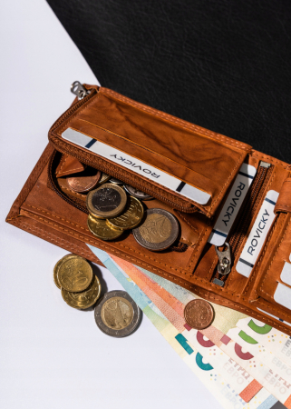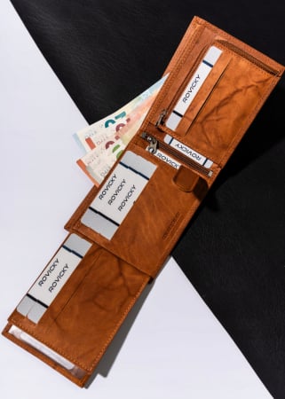 Portofelul include un buzunar pentru monede. Datorită închiderii cu fermoar, conținutul său este complet sigur. Dimensiunea sa mare face ca schimbarea să fie destul de convenabilă.