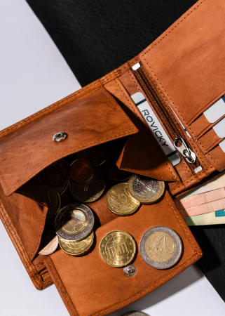 Are si 3 compartimente pentru bancnote.Două dintre ele sunt deschise, unul este închis cu fermoar. Această soluție vă va face mai ușor să vă separați numerarul, mai ales dacă aveți nevoie să aveți diferite valute cu dvs.