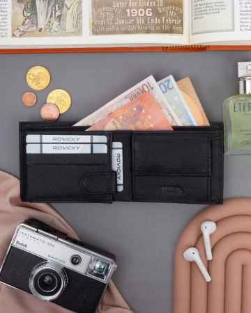 Funcționalitate și capacitate | Portofelul a fost proiectat cu mare accent pe confortul de utilizare. Datorită dimensiunilor sale mici, poate încăpea cu ușurință în buzunarul pantalonilor. În ciuda dimensiunilor sale, este foarte încăpător – un număr mare de buzunare și compartimente îți vor oferi spațiu pentru toate cardurile și documentele de care ai nevoie;