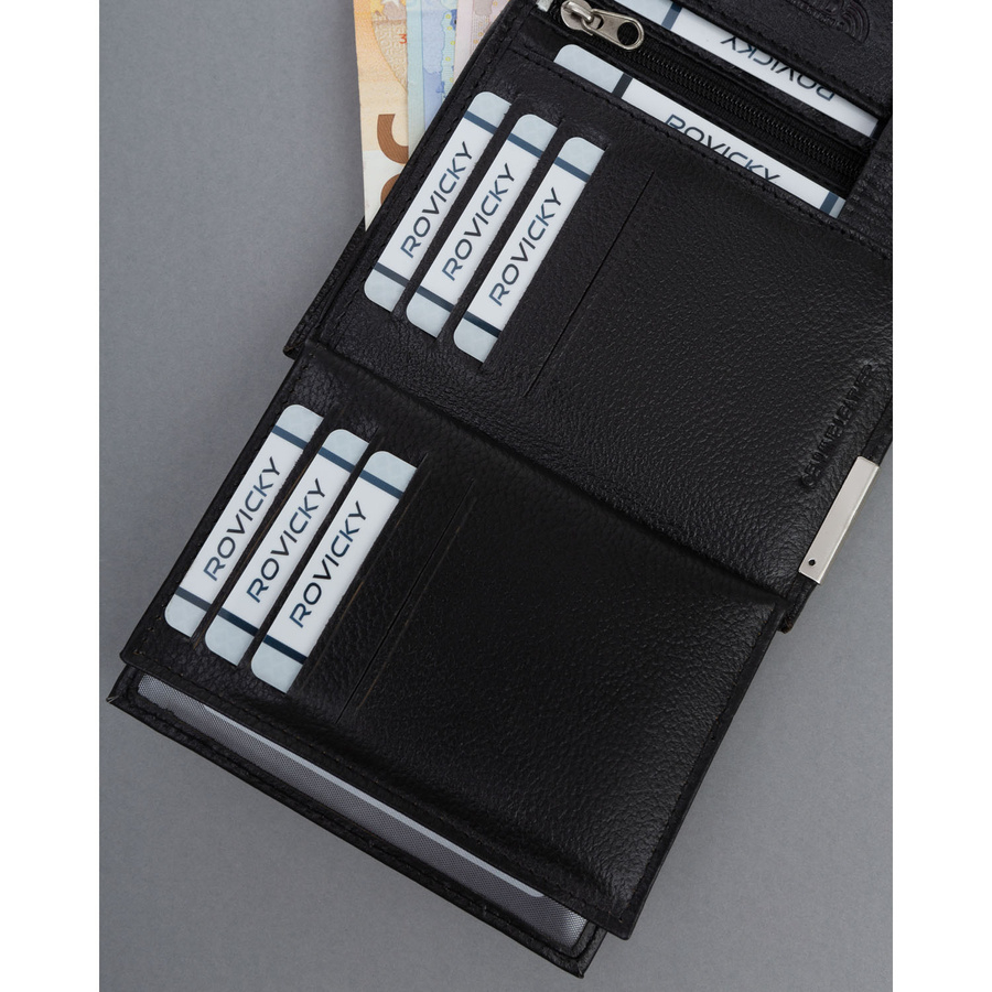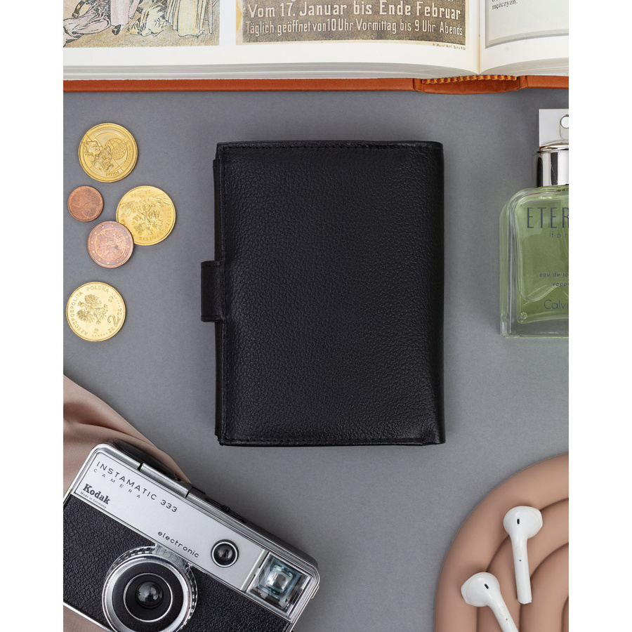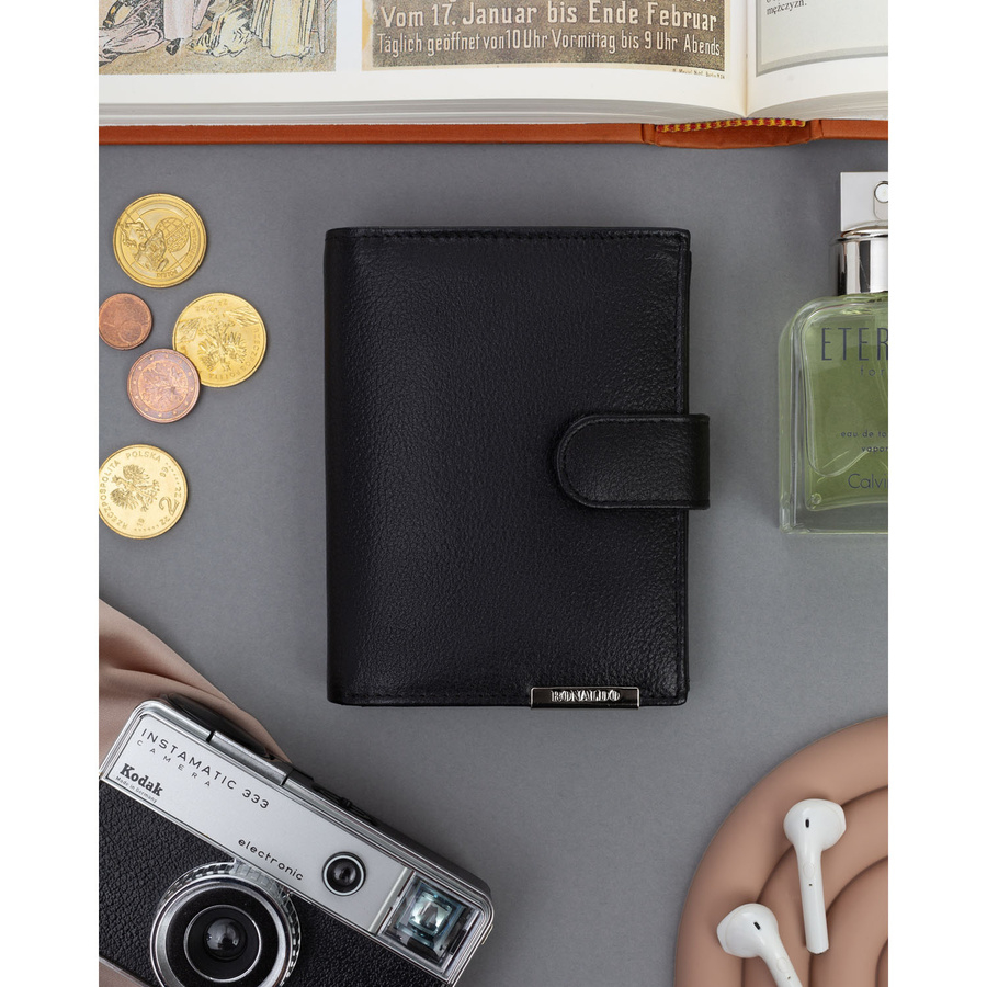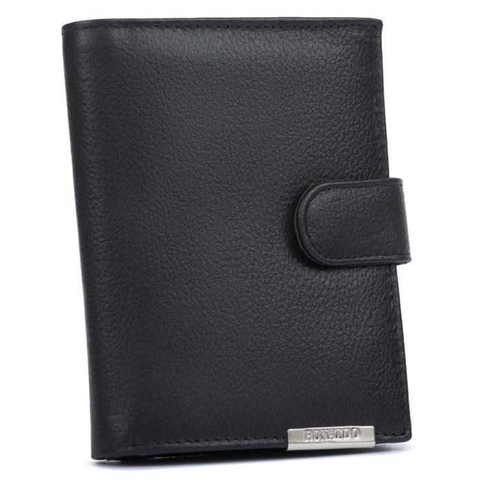 Portofel mare bărbătesc din piele neagră cu închidere cu capsă - 4U Cavaldi