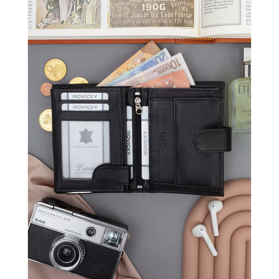 În plus, veți găsi 4 compartimente pentru documente, inclusiv un spațiu pentru cardul de înmatriculare al vehiculului. Aspectul clar face totul ușor accesibil fără a fi nevoie să desfaceți întregul portofel.