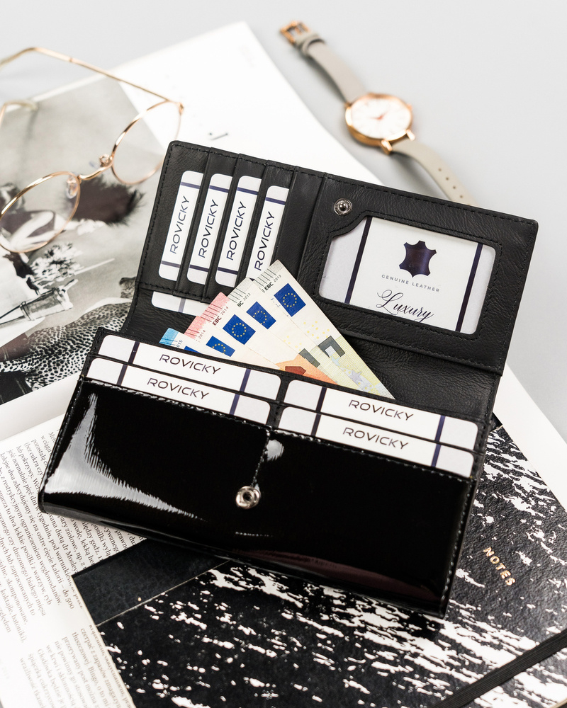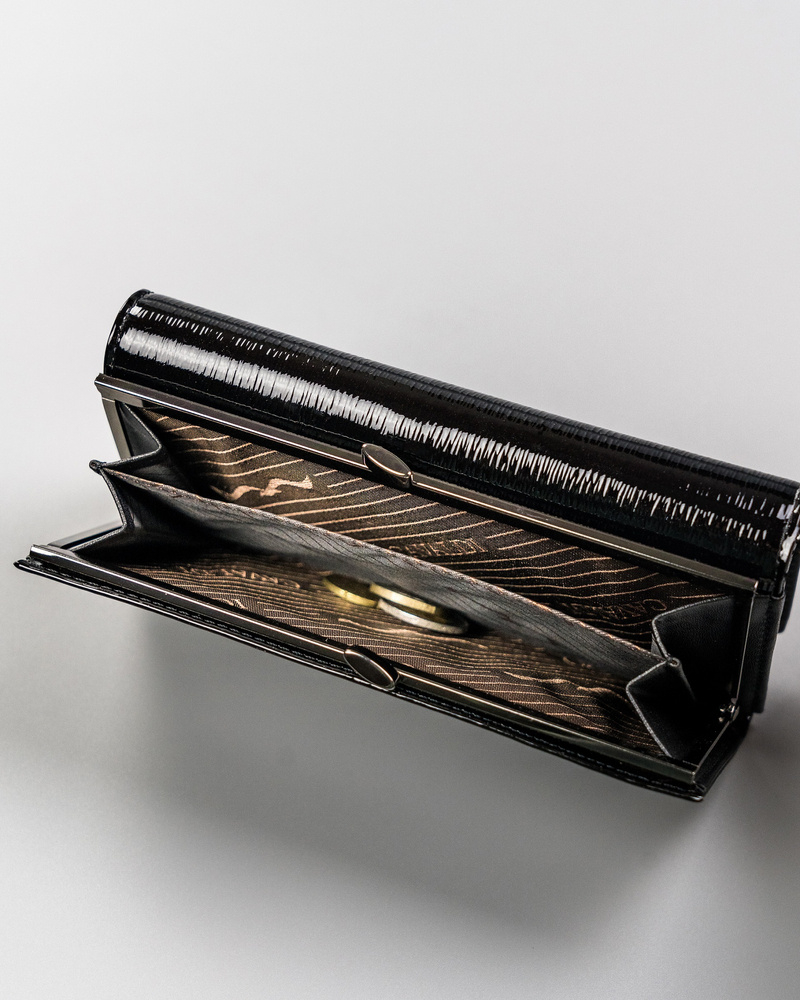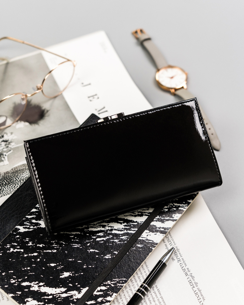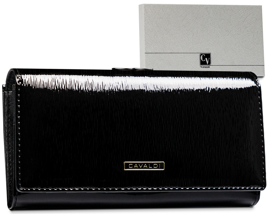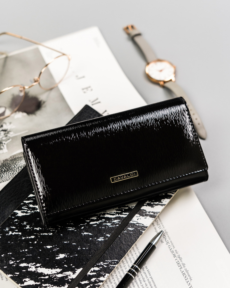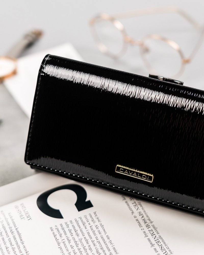Duży, pojemny portfel damski z lakierowanej skóry naturalnej — Cavaldi