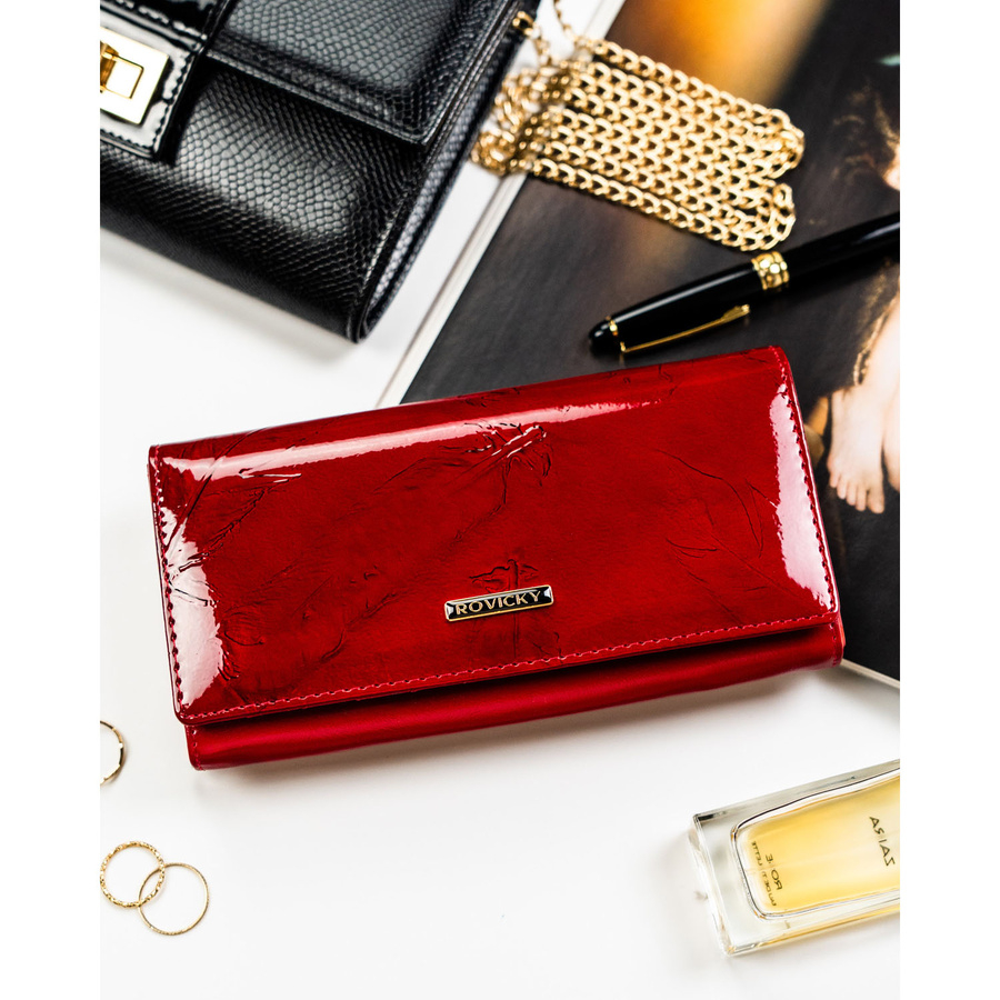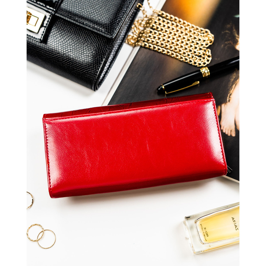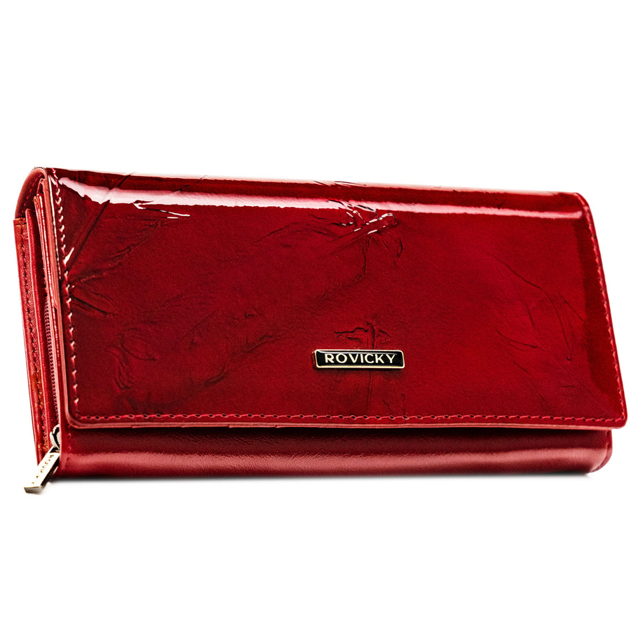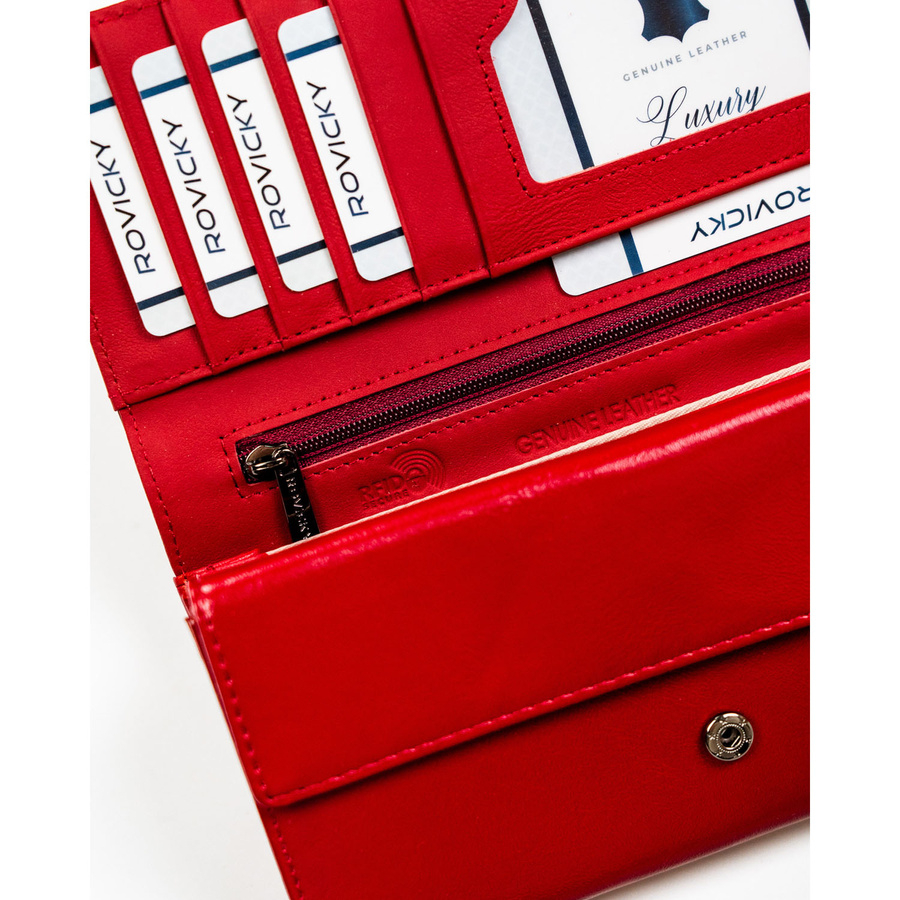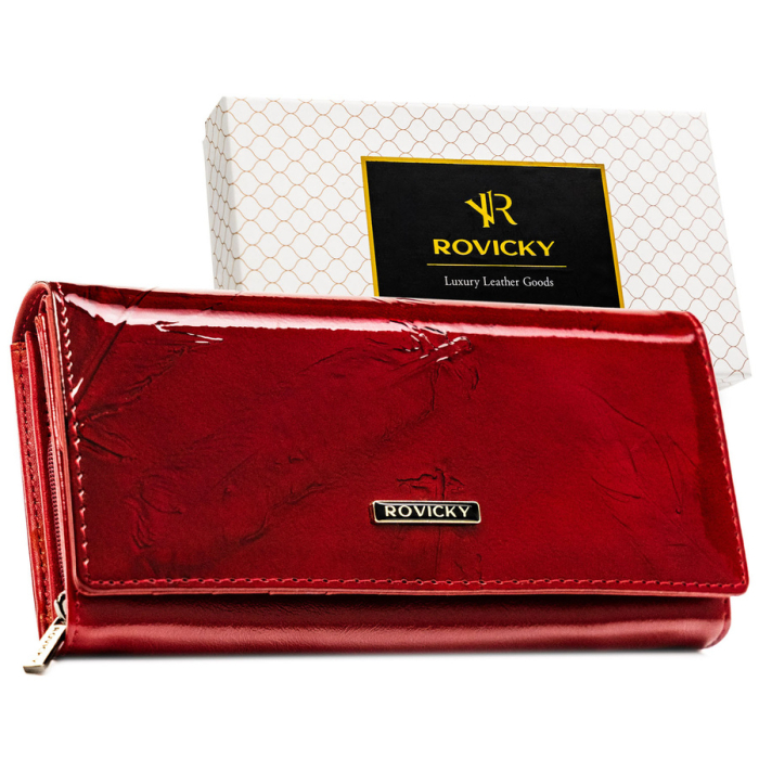 Portofel mare de damă din piele lăcuită roșie, confecționat din piele naturală și ecologică, protecție RFID - Rovicky