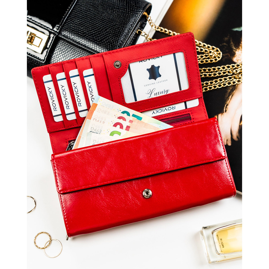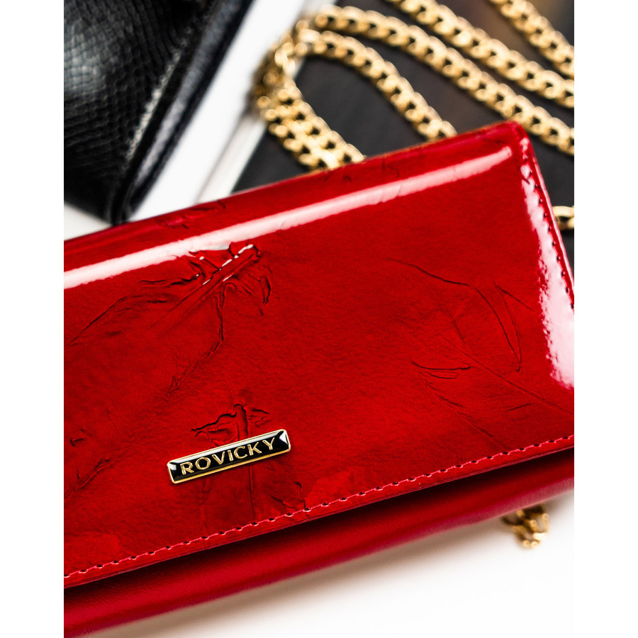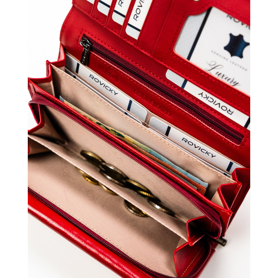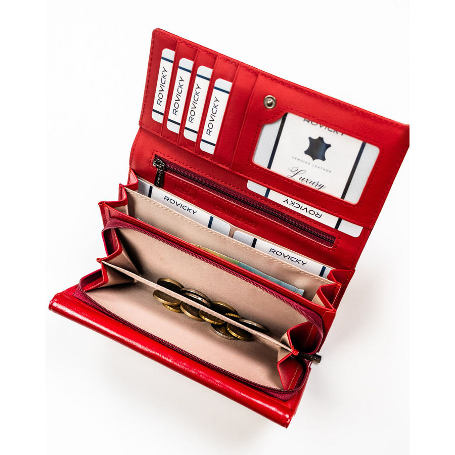 Portofel mare de damă din piele lăcuită roșie, confecționat din piele naturală și ecologică, protecție RFID - Rovicky