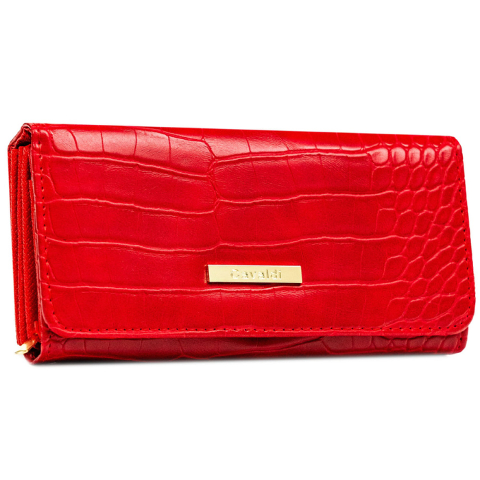 Portofel mare de damă roșu din piele ecologică, model în relief - 4U CAVALDI