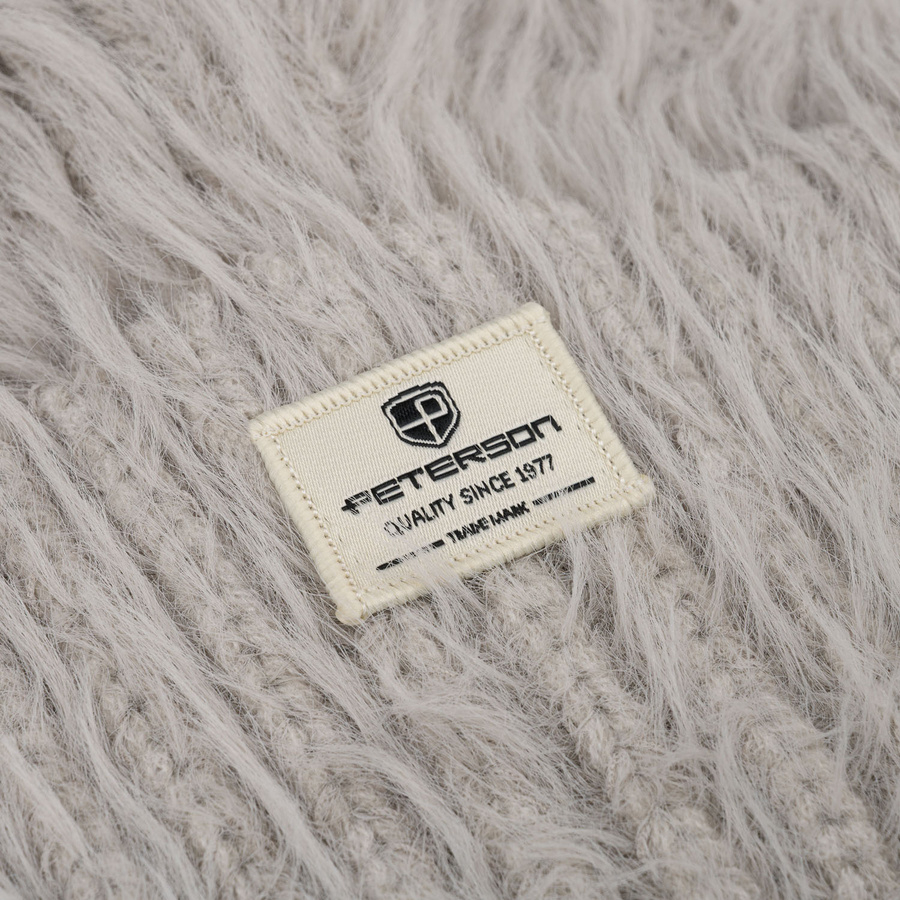 • Acest model impresionează prin designul său modern și textura subtilă de blană artificială, care adaugă un caracter distinctiv piesei. Eticheta minimalistă cu logo-ul Peterson® de pe partea din față adaugă o notă elegantă, demonstrând atenție la fiecare detaliu.