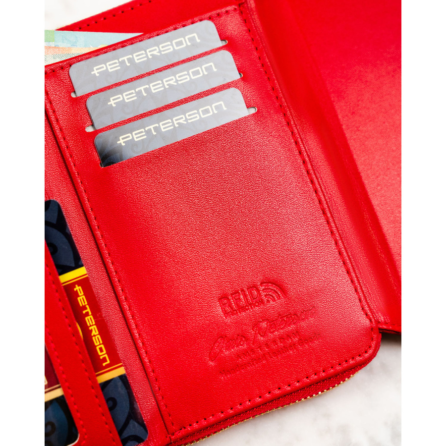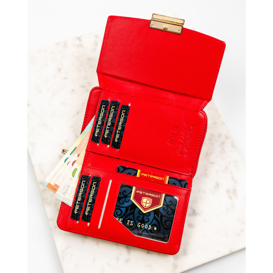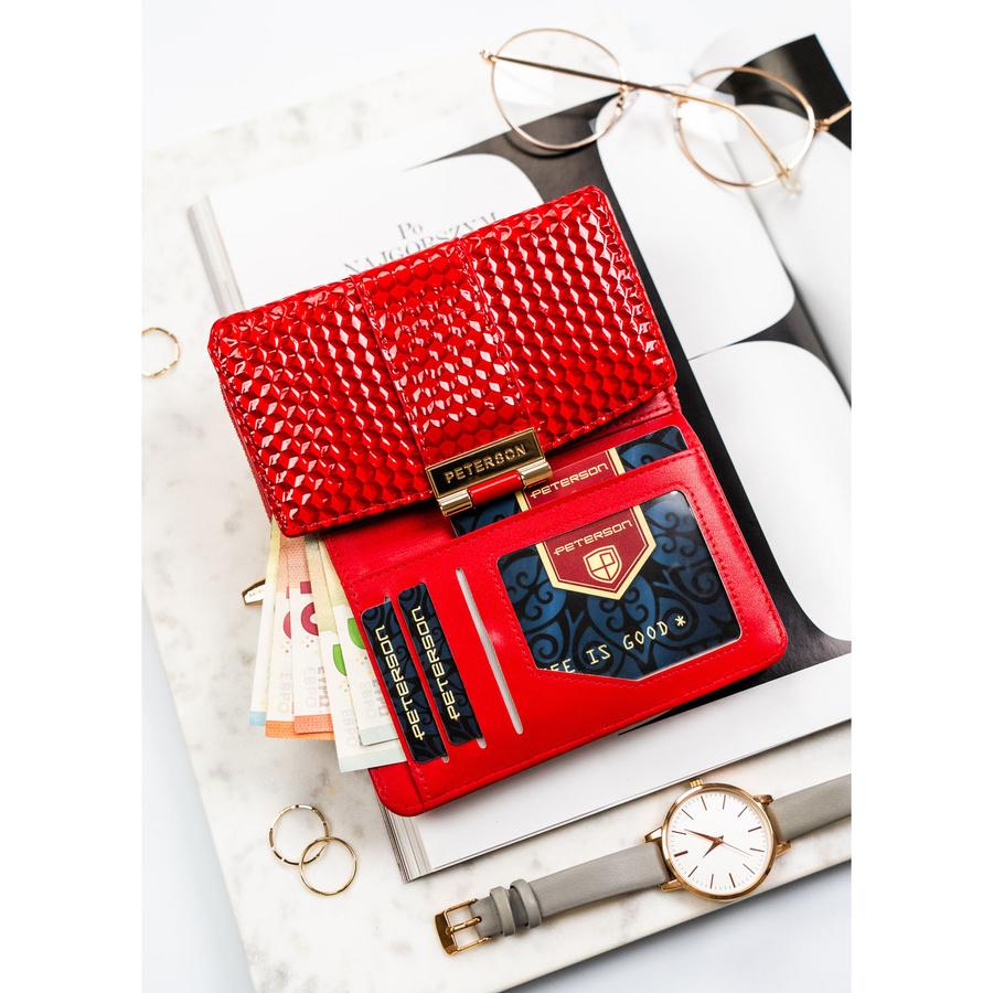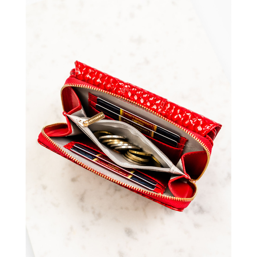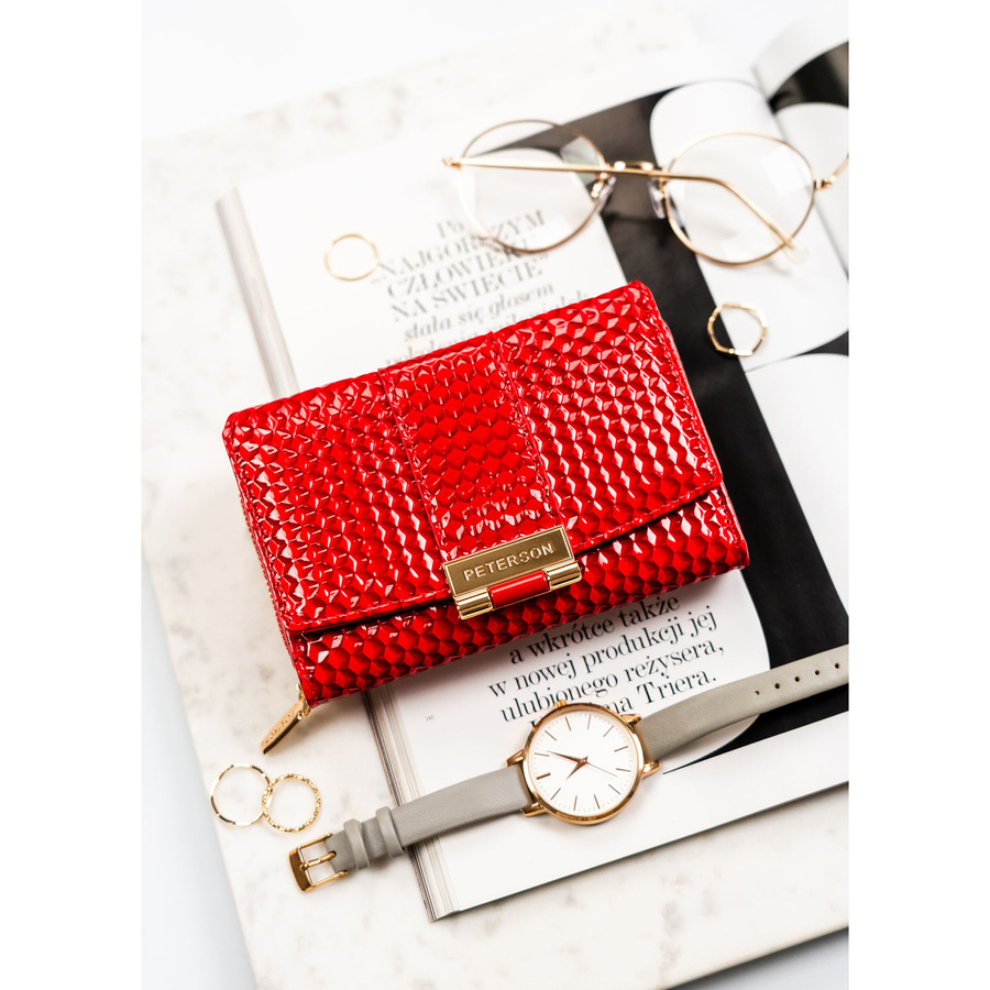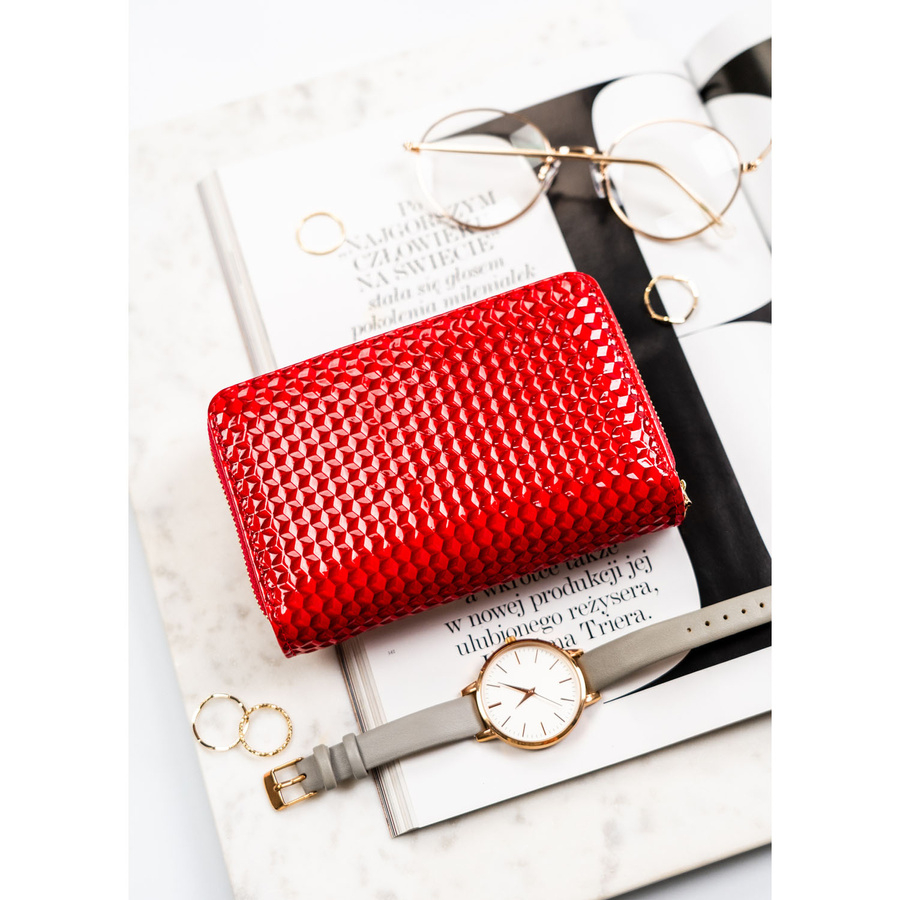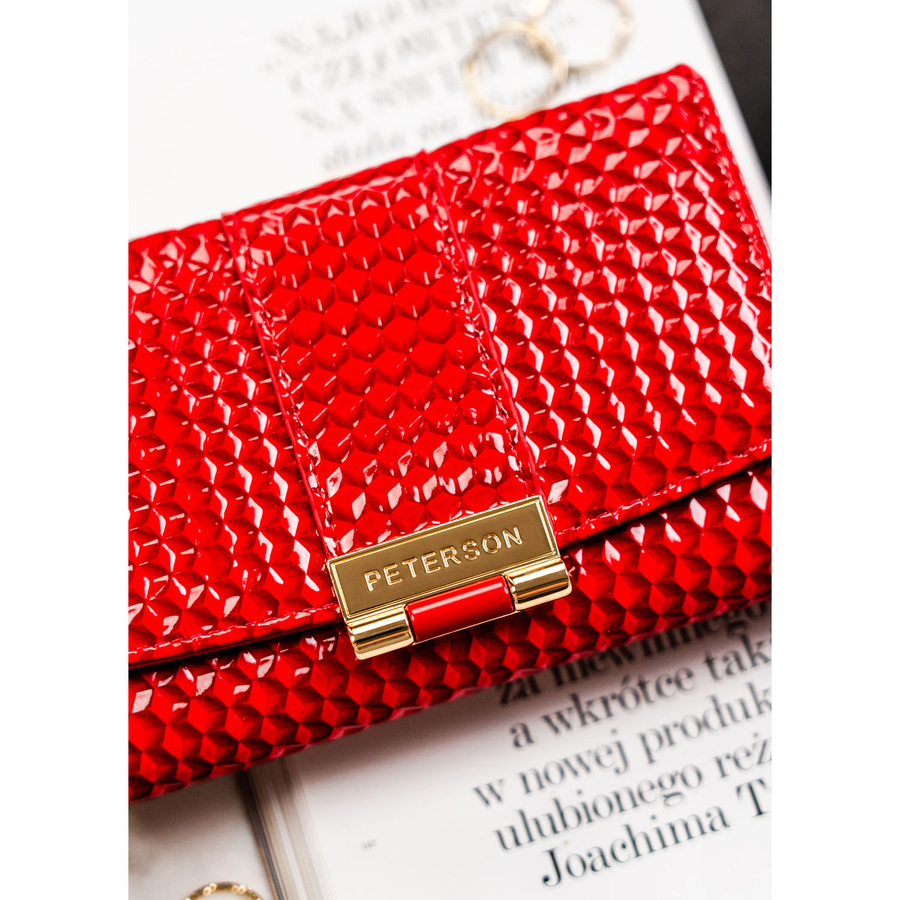 Czerwony, lakierowany portfel damski wykonany ze skóry ekologicznej o przestrzennej fakturze - Peterson