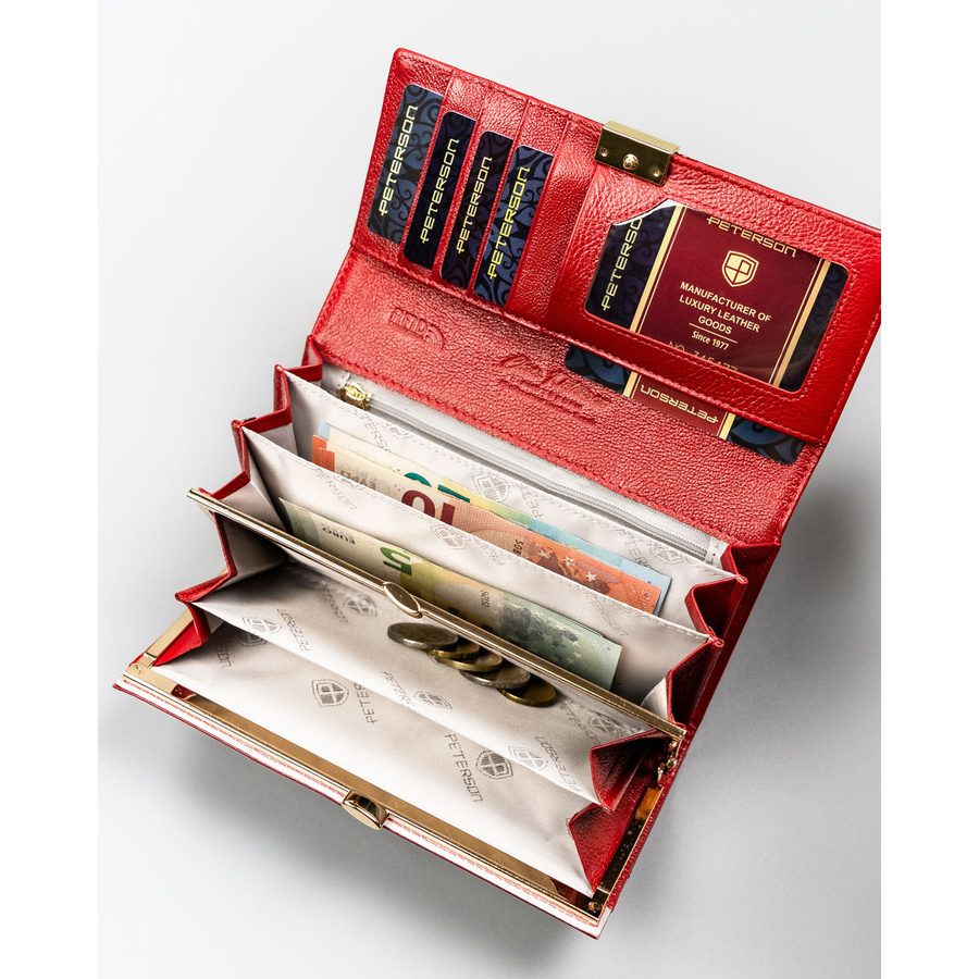 Portfel Peterson® to nie tylko piękny wygląd, ale także niezwykle funkcjonalne wnętrze. Dzięki wielu przegrodom i kieszeniom, idealnie organizuje przestrzeń, aby wszystko było pod ręką: